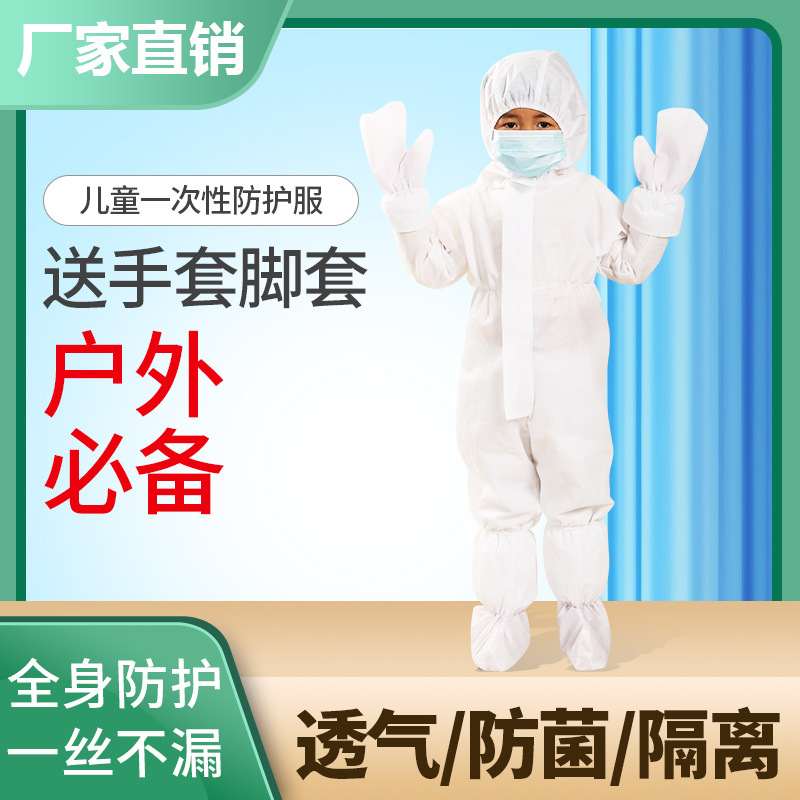 子供用使い捨て防護服隔離服ワンピース帽子付き通気防塵民間公演pp不織布現物