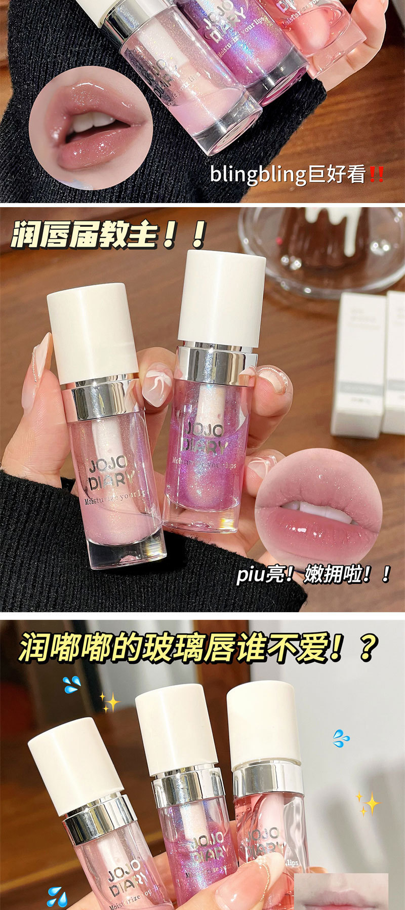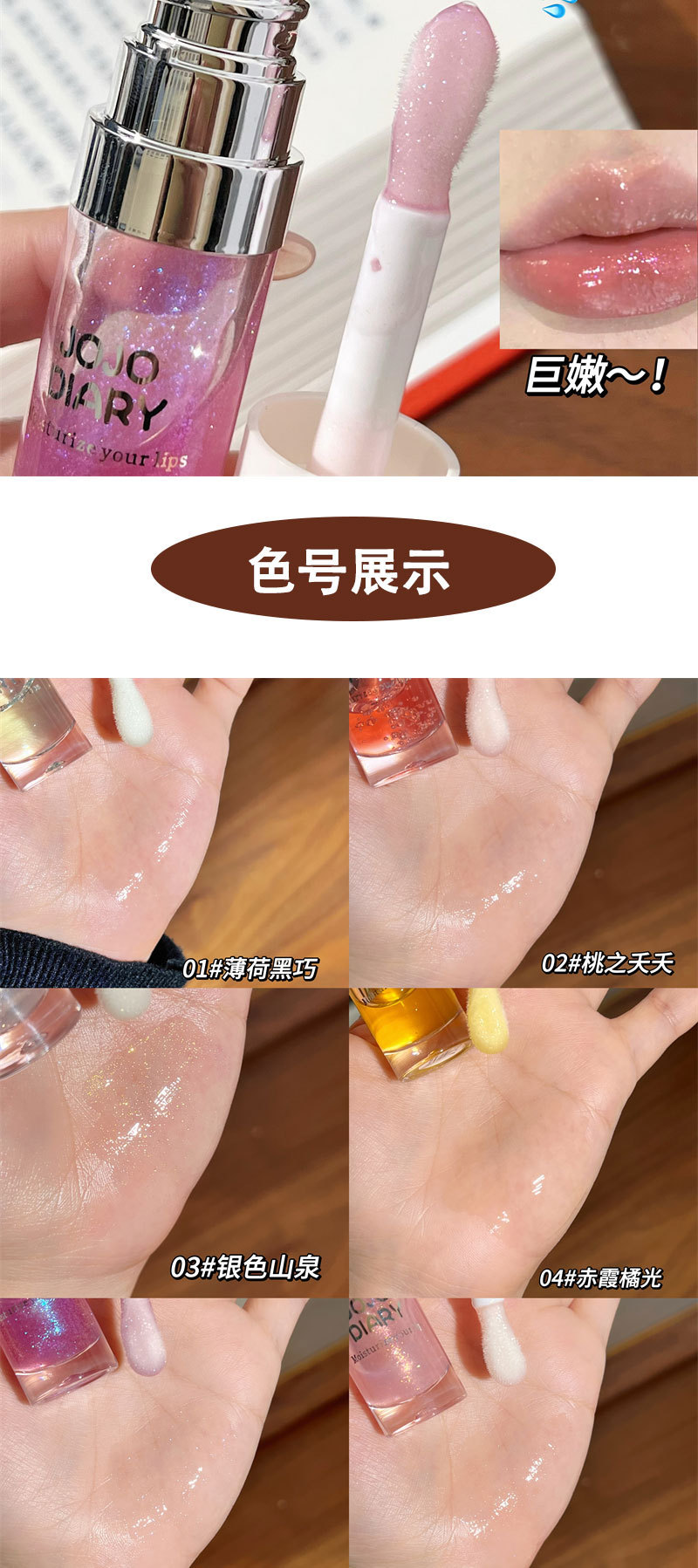 JOJO DIARY春夏ジュース唇釉薬潤い保湿白みをつけないで、コップをつけないで色が落ちない鏡面水光ガラス唇