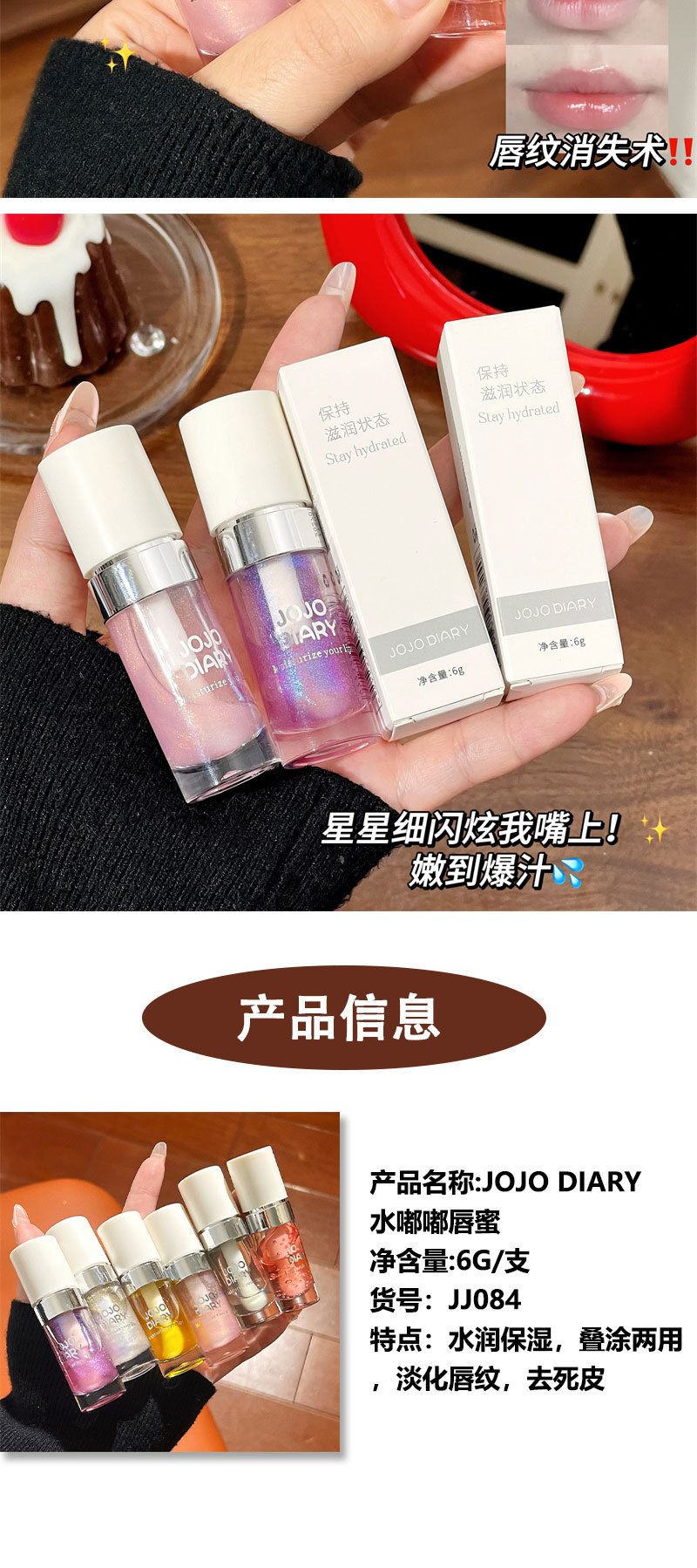 产品名称:JJ084-银边水光嘟嘟唇蜜