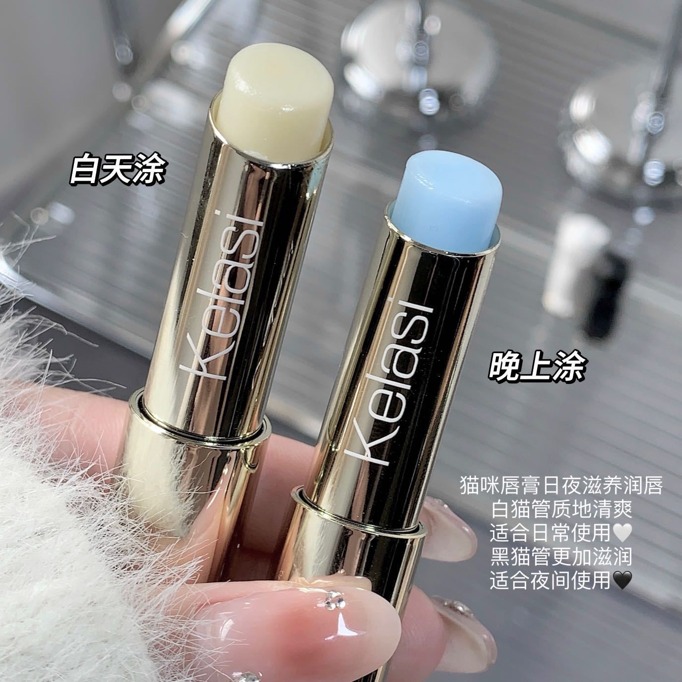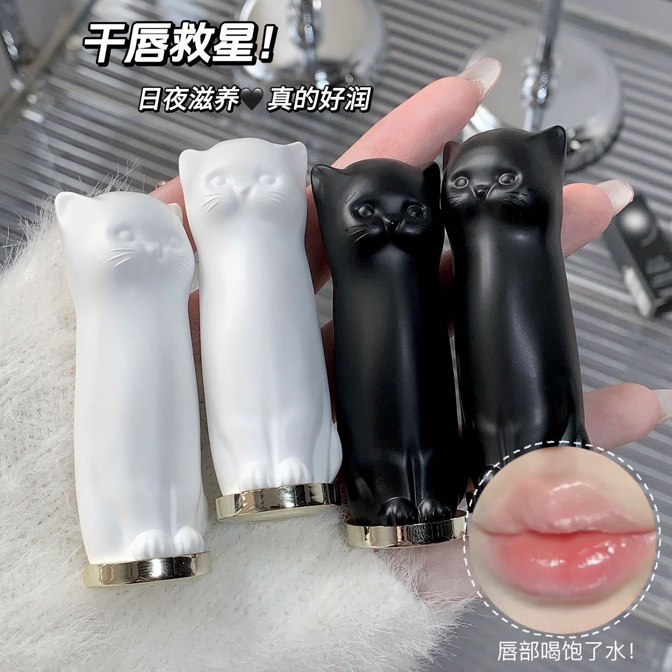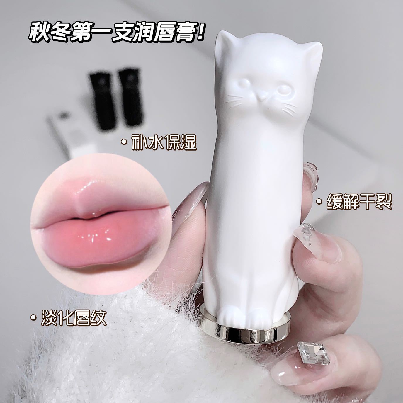 コラ思猫潤唇膏女保湿潤い水乾燥防止皮薄め唇紋秋冬金無色