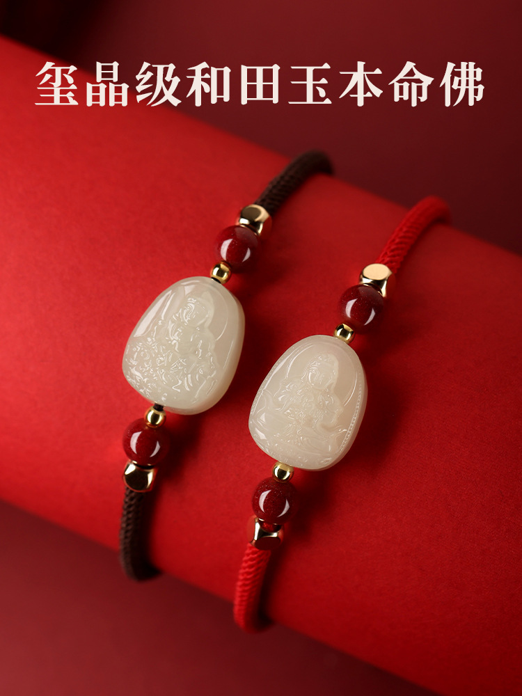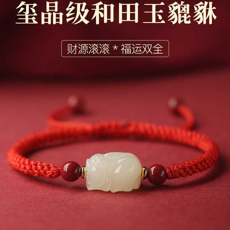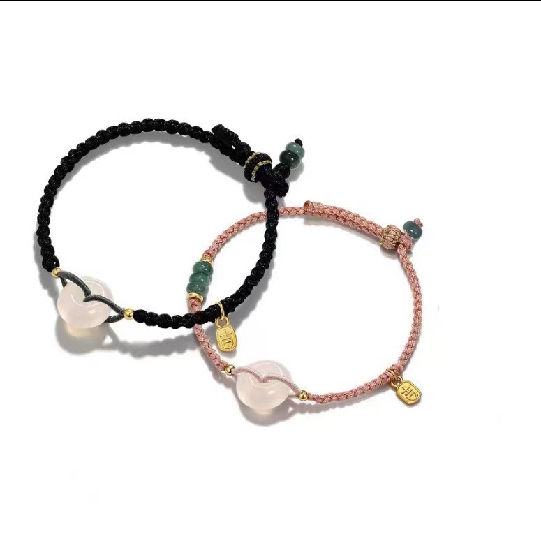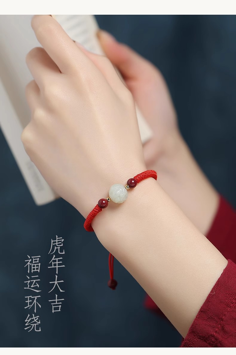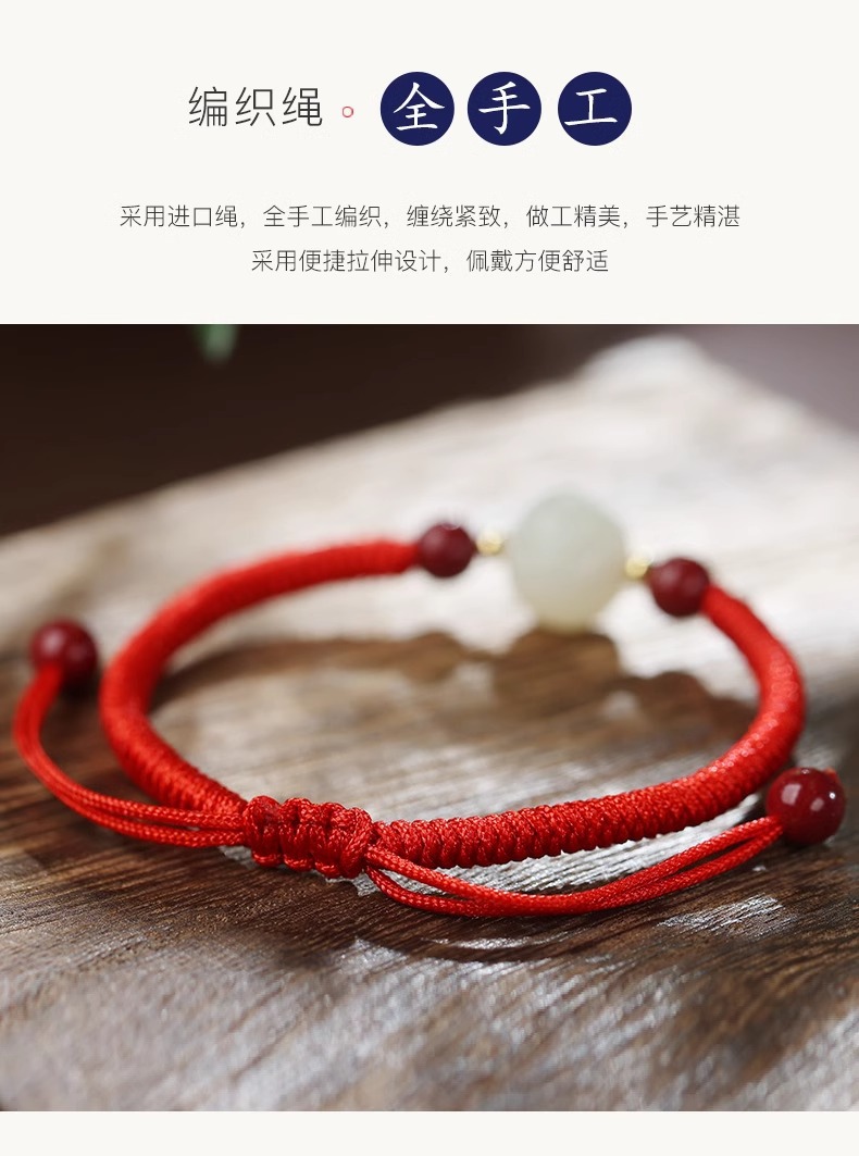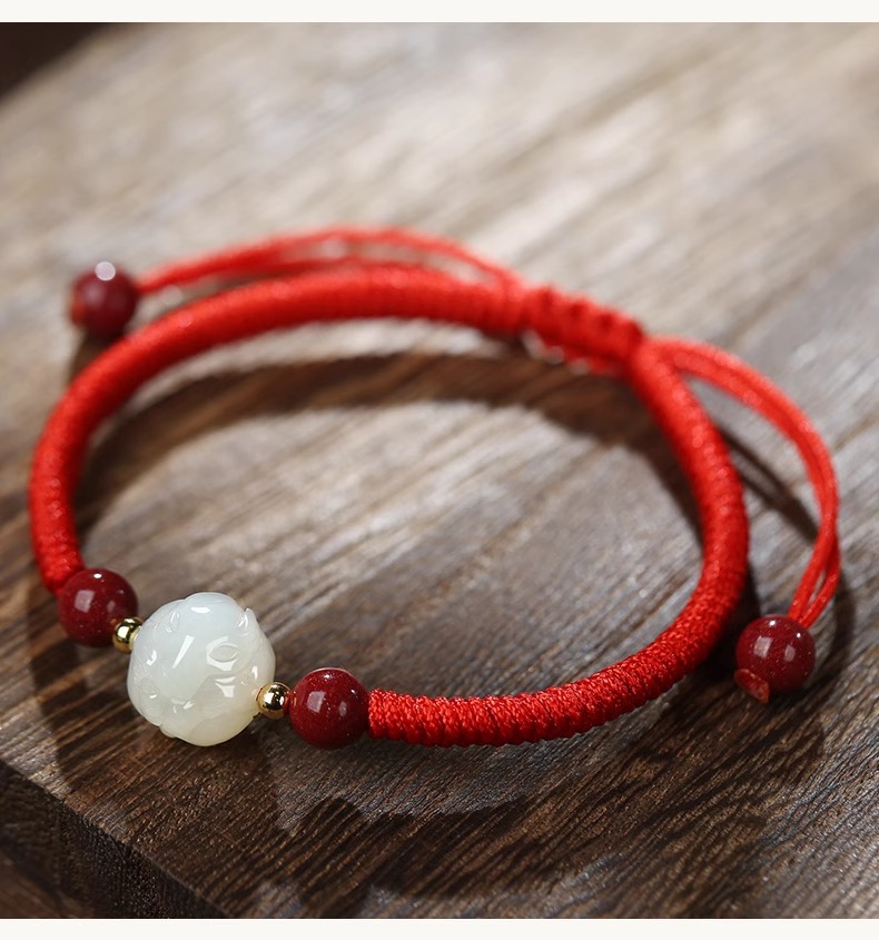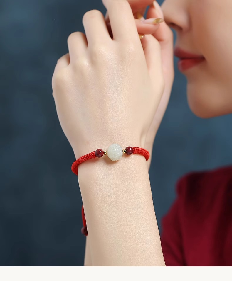 和天翡翠干支編み込み赤いブレスレット