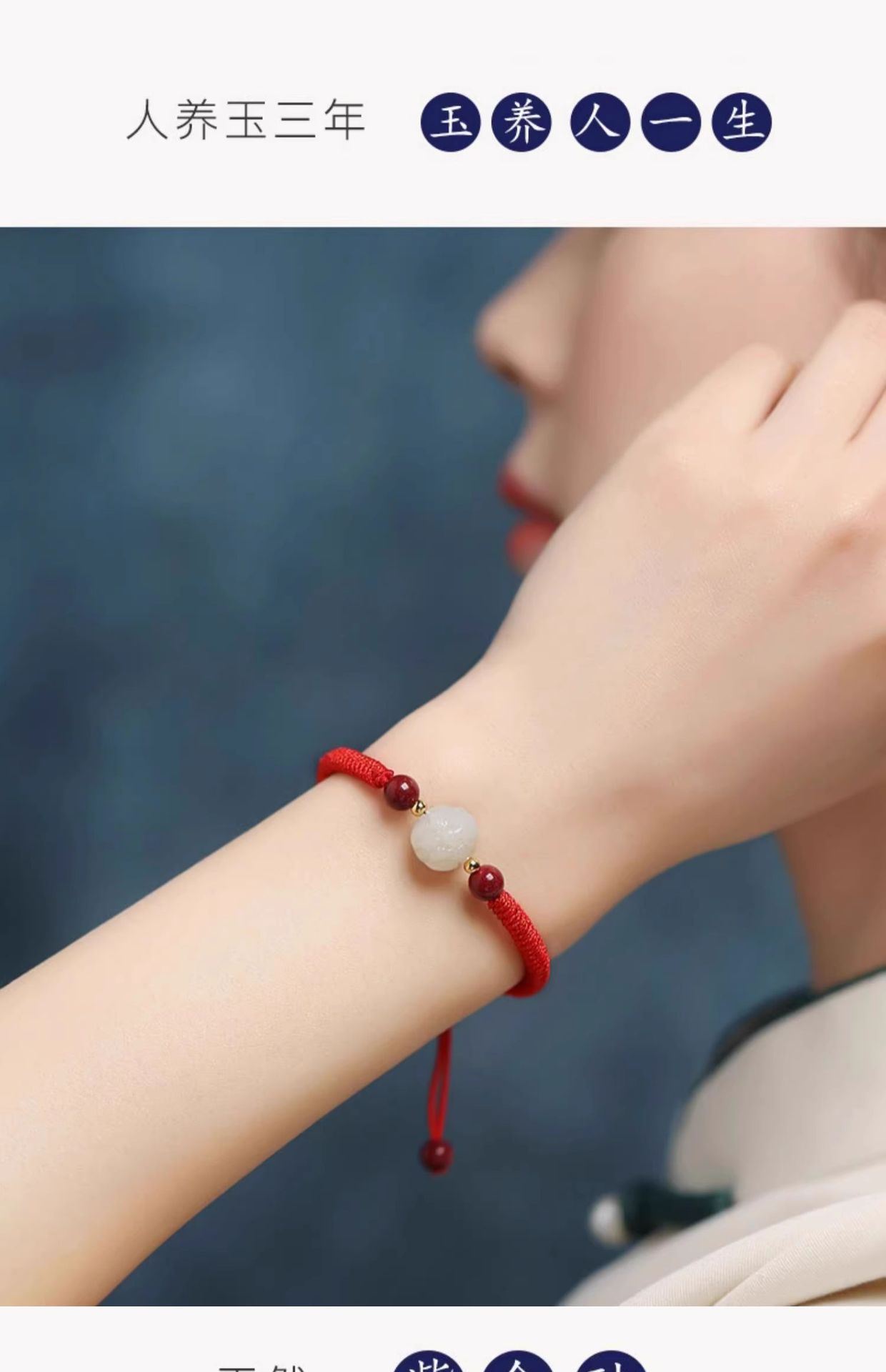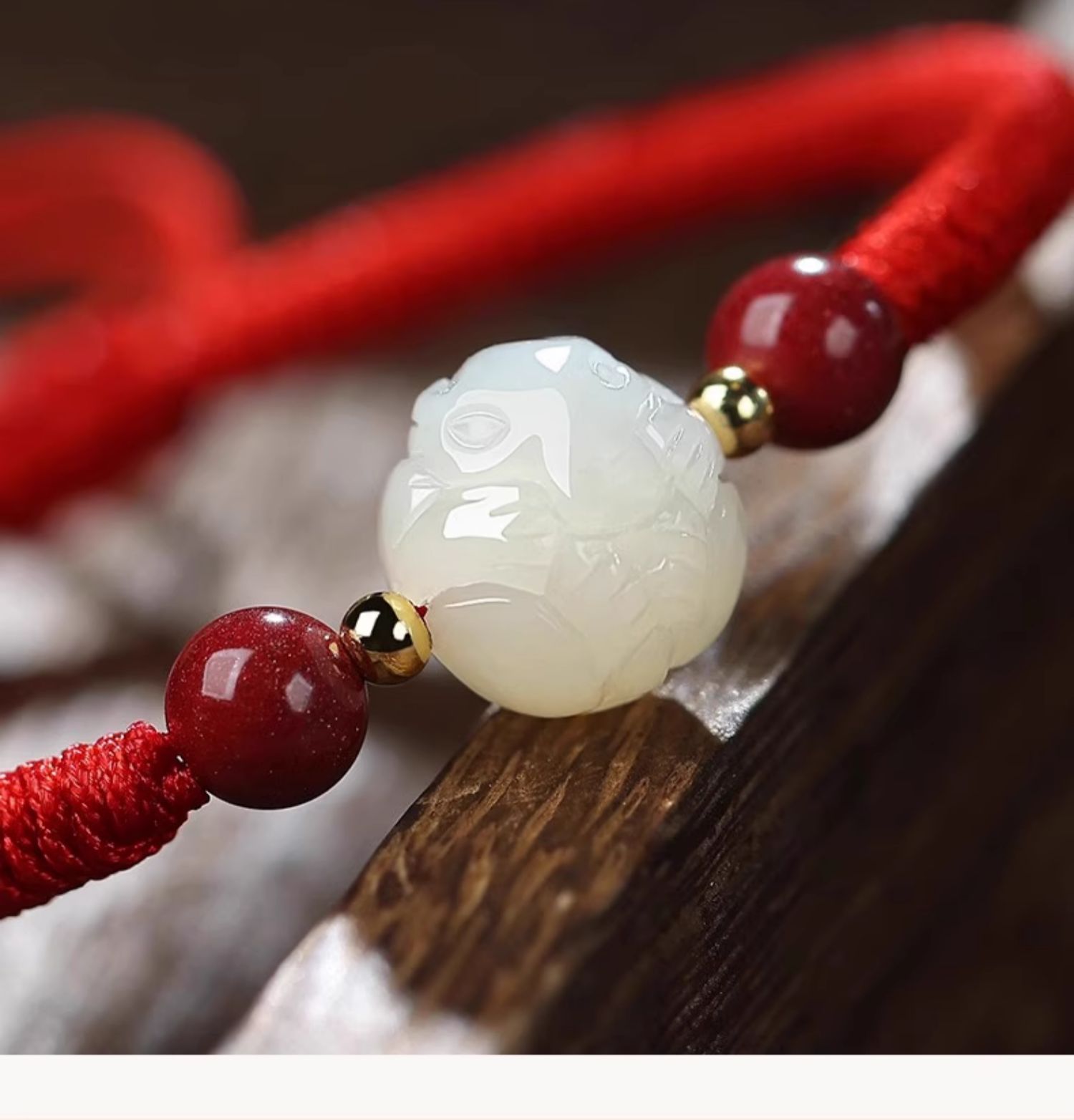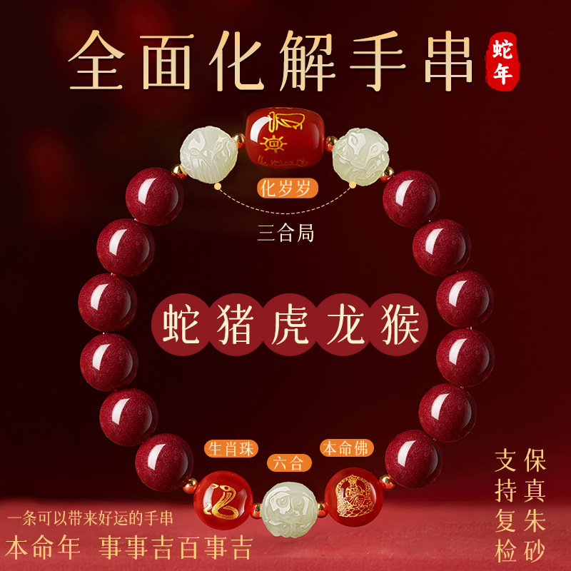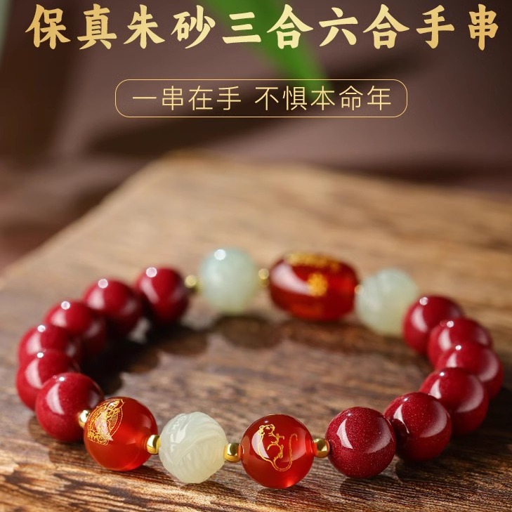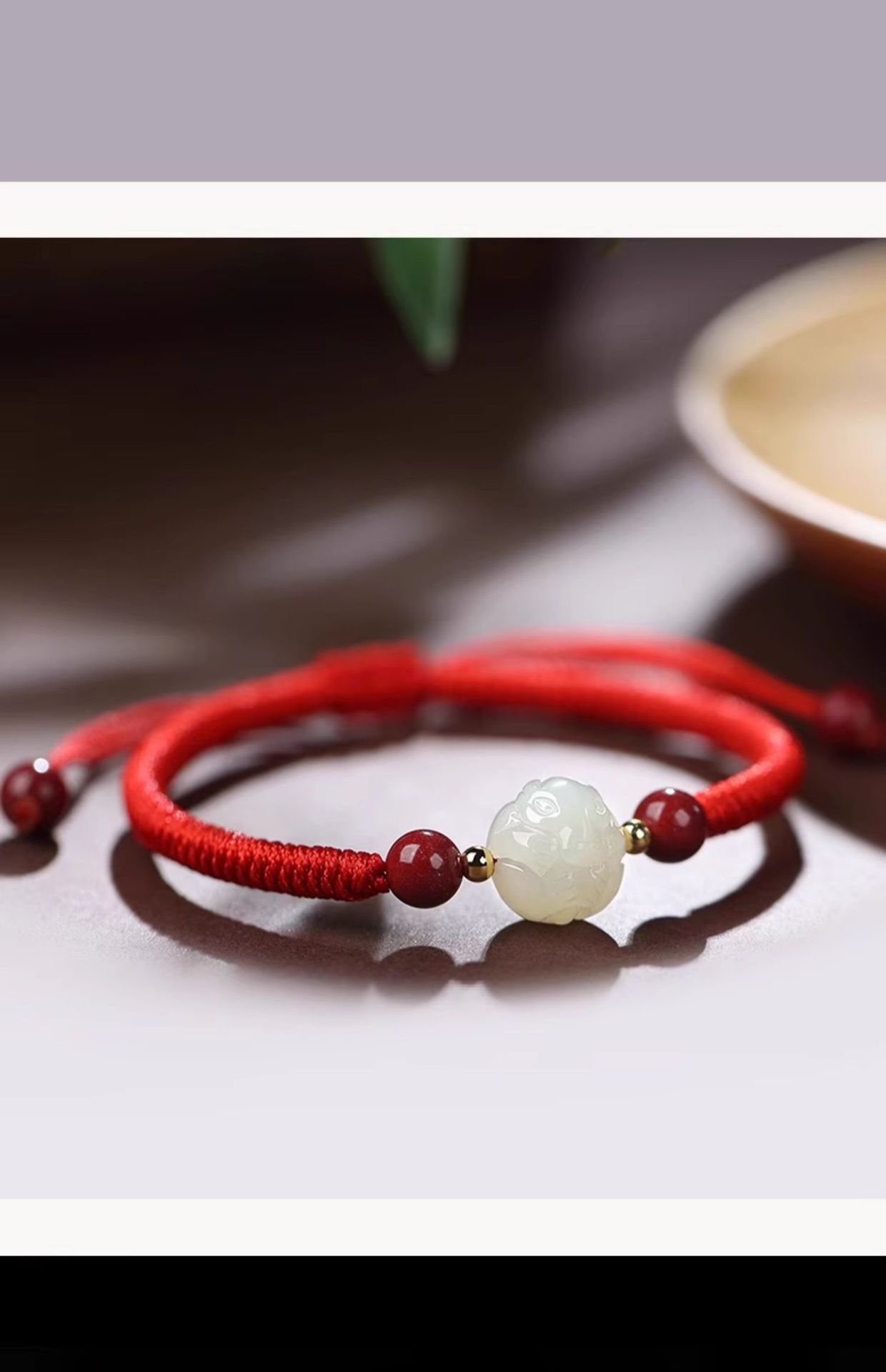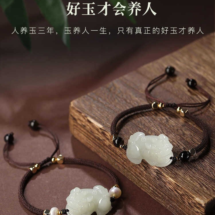 和天翡翠干支編み込み赤いブレスレット