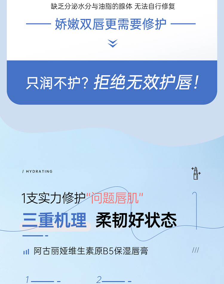 阿古丽娅维生素B5护唇膏高倍修护淡细纹保湿滋润补水润唇膏防干燥