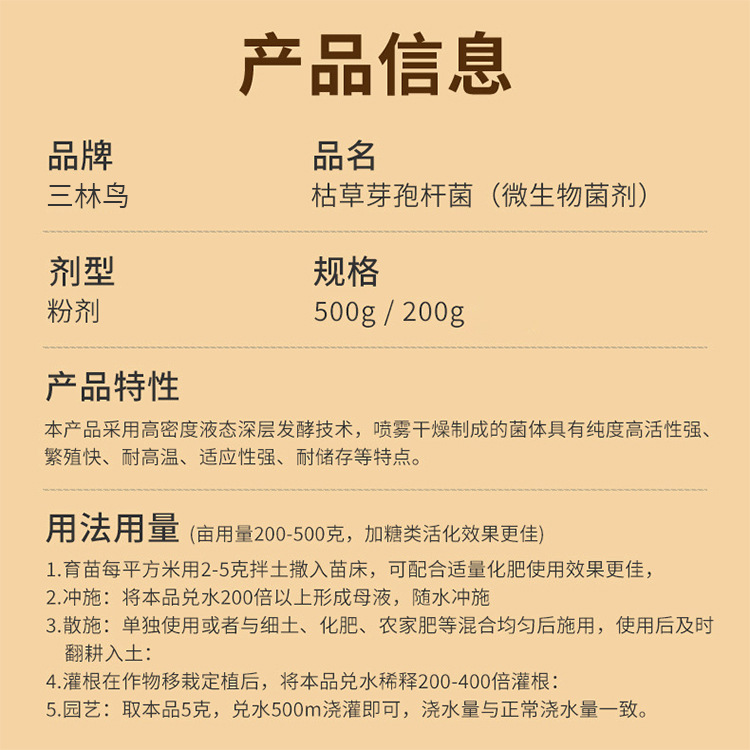 批发三林鸟枯草芽孢杆菌微生物菌剂改良土壤生根壮苗土壤改良剂肥