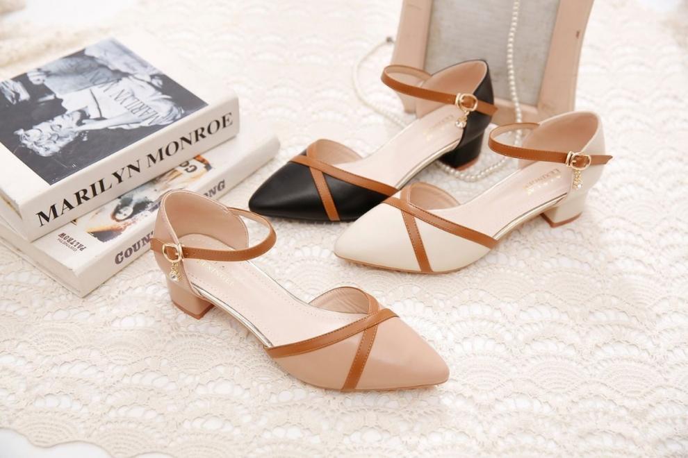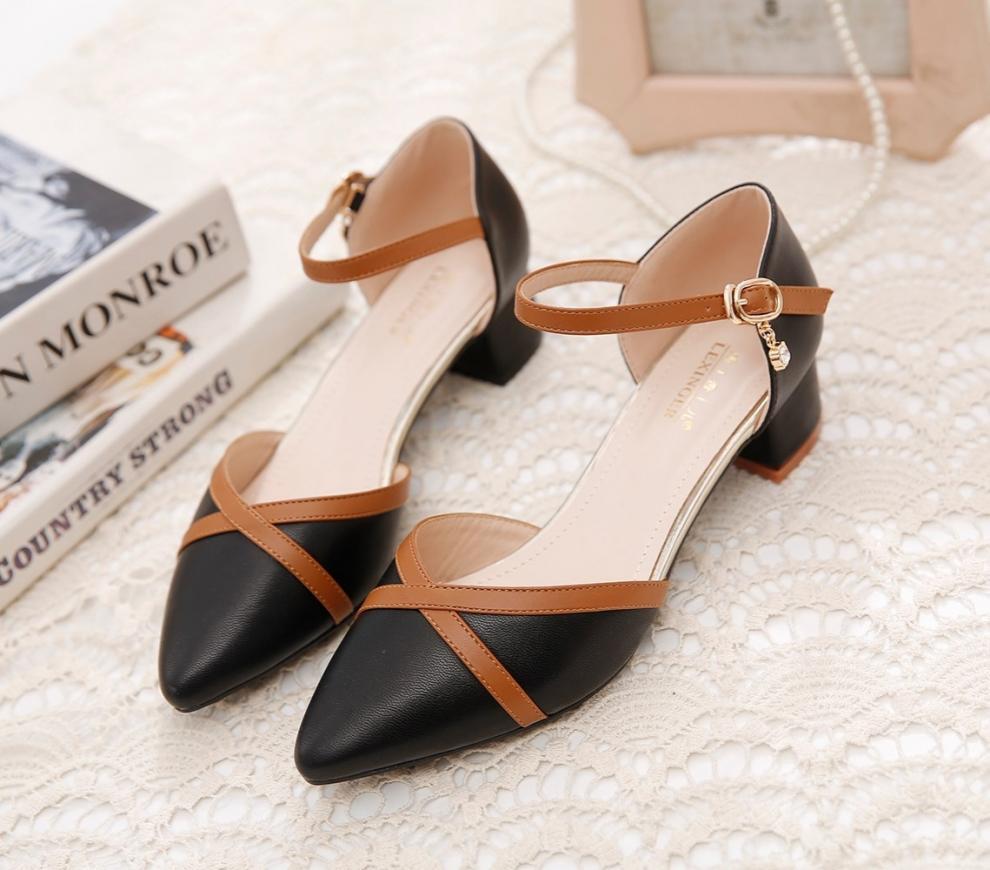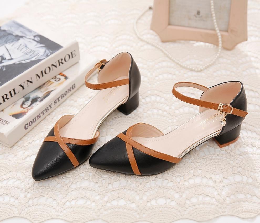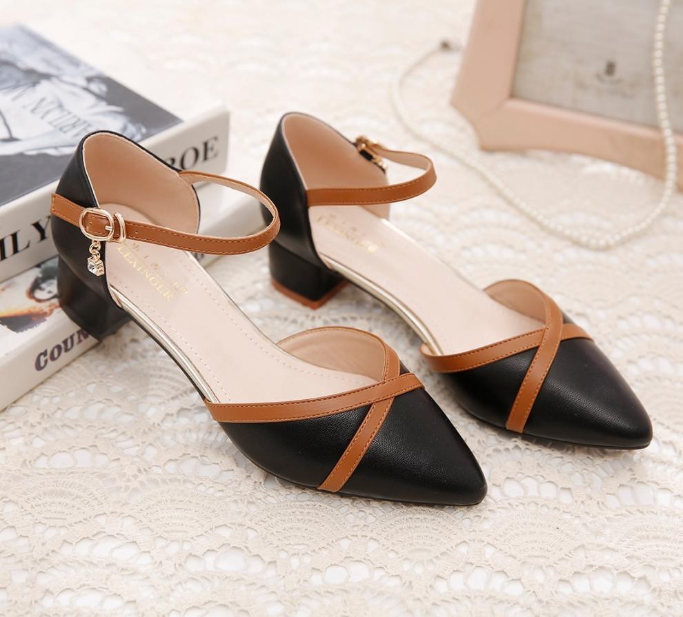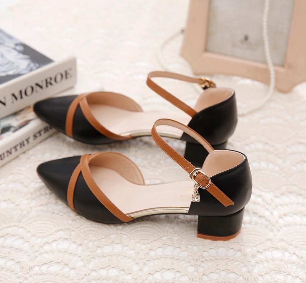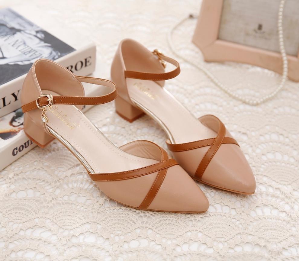 包頭サンダル女性2025新型春夏一字ボタン太ヒール中と百合色の先の仕事靴女性