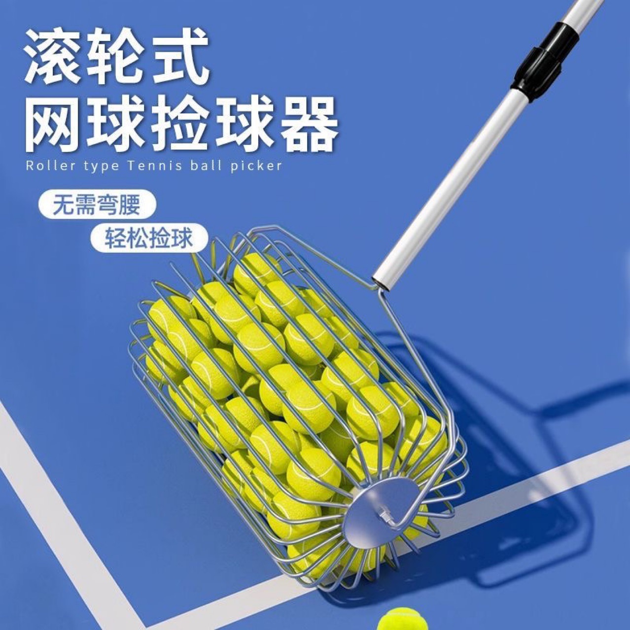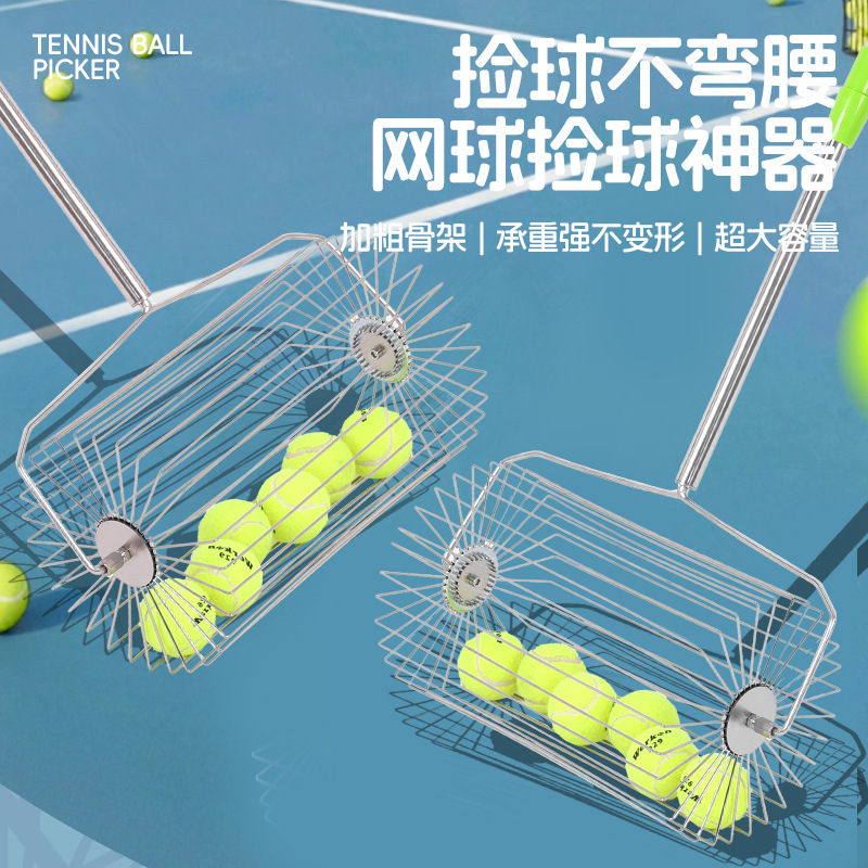 不锈钢滚轮式网球捡球器轻便网球拾球器捡球神器可调捡球器材滚筒