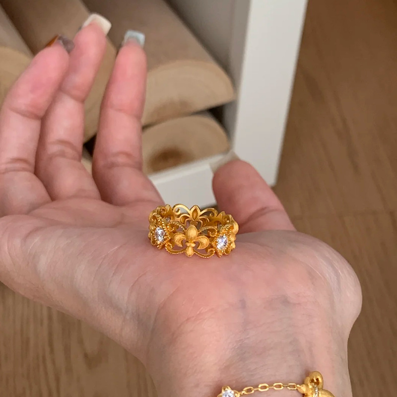 小紅書古法拉糸単ドリル指輪女性ヴィンテージ中古素輪軽豪華高級感角ドリルリング
