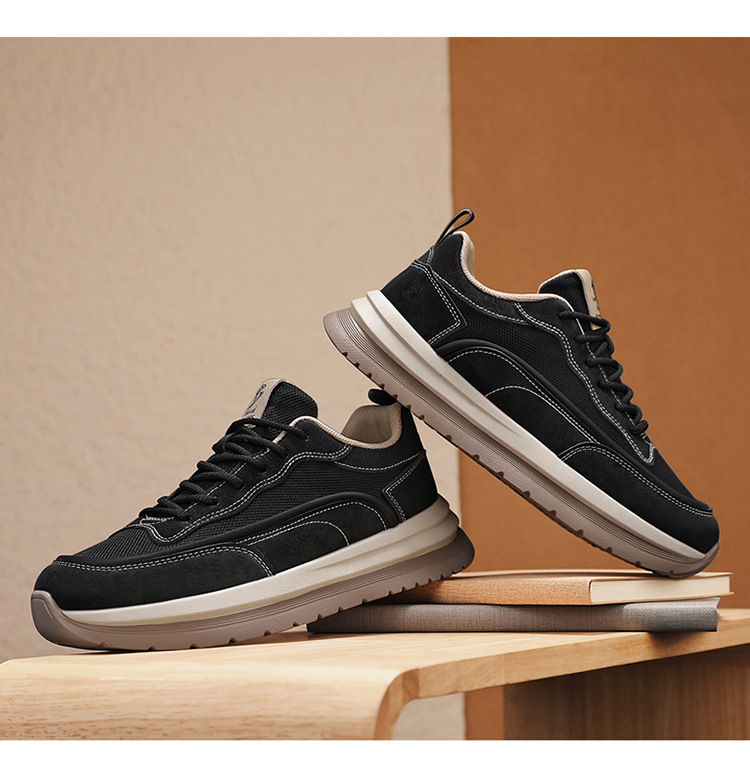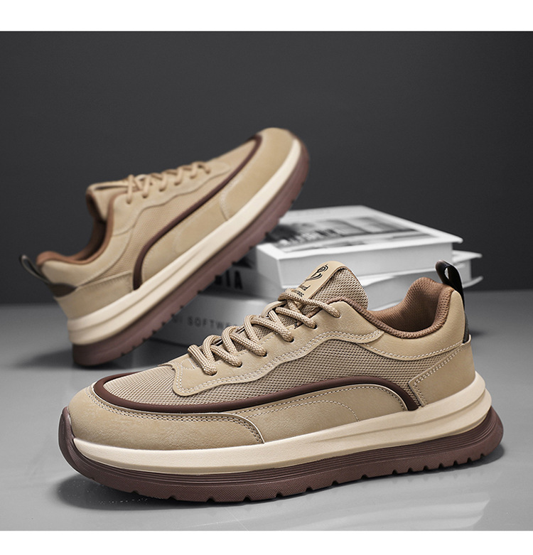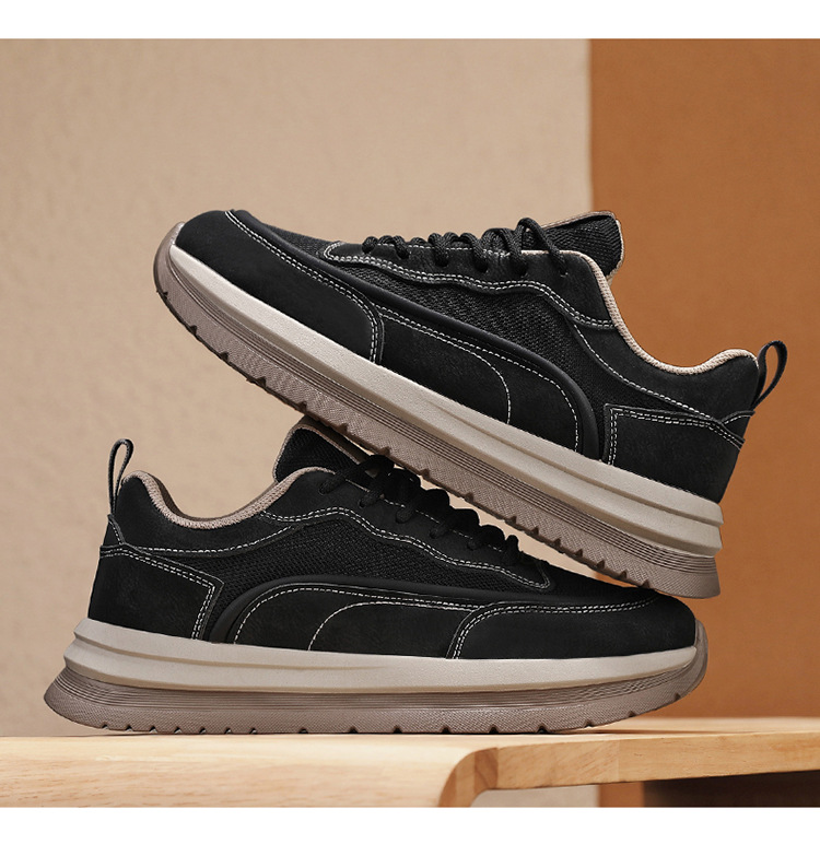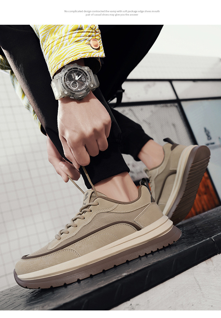 メンズスニーカー、フラット、滑り止め、耐摩耗性、身長アップ、紐付き、柔らかいソール、多用途、メンズシューズ、カジュアルシューズ、トレンディ、通気性、衝撃吸収