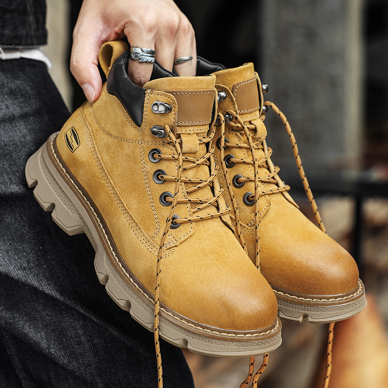 工装靴男2024秋の新型アウトドアレジャー低助マーティンブーツ大黄靴底が高くなって軽やかな男靴
