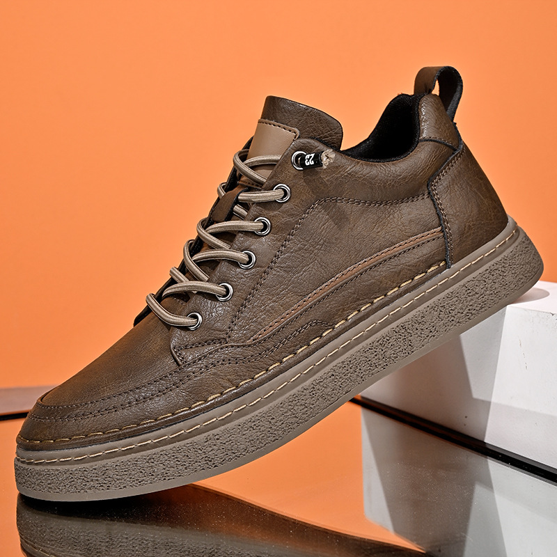 カジュアルシューズ 2025 新作革靴メンズ本革フラットソール滑り止めローカット大きいサイズ中年第一層牛革メンズスニーカー