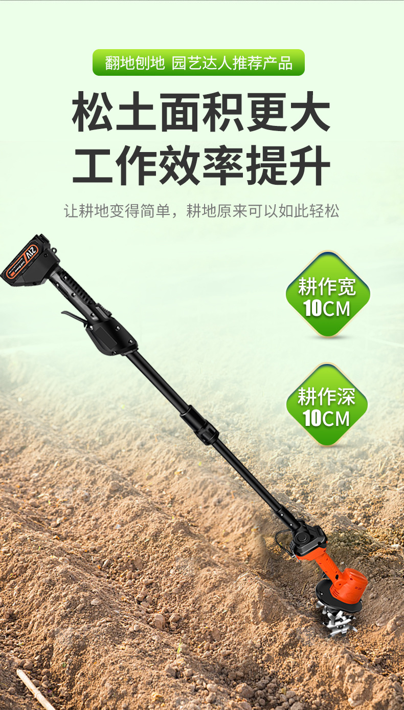 2025新款锂电旋耕机充电式小型微耕机家用种菜种花手持电动松土机