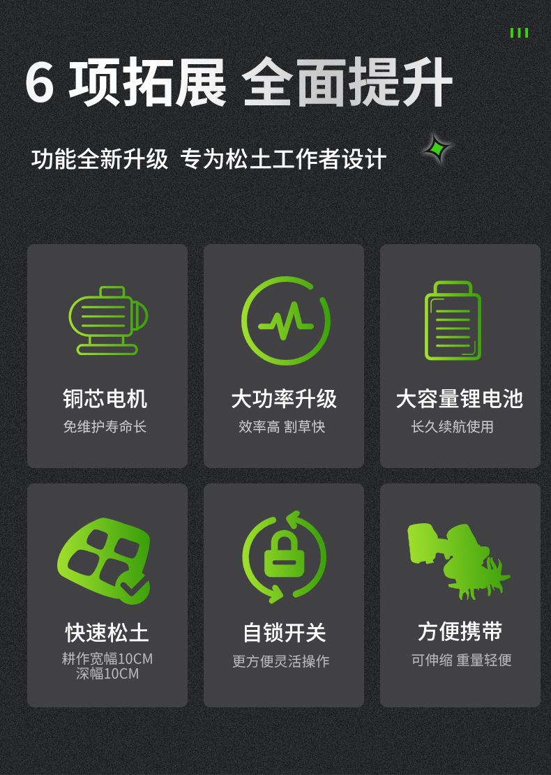 新型リチウム電池式土壌耕うん機、小型家庭用回転耕うん機、手持ち式電動鍬、庭園盆栽除草・微耕うん機