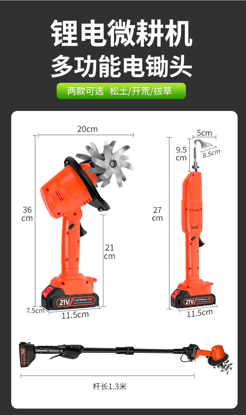 電動松土機クロスボーダー小型農業用微耕機回転耕運機の草取りリチウム電気芝生剪定機の耕うん機