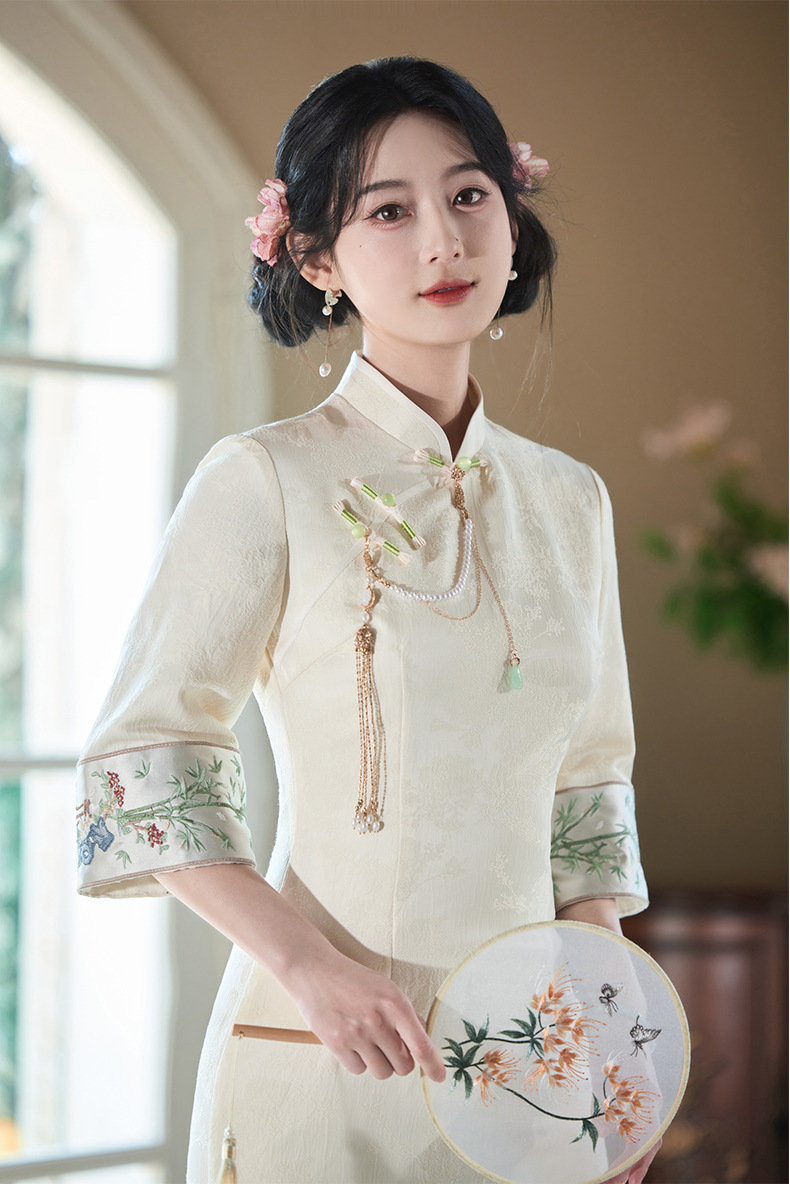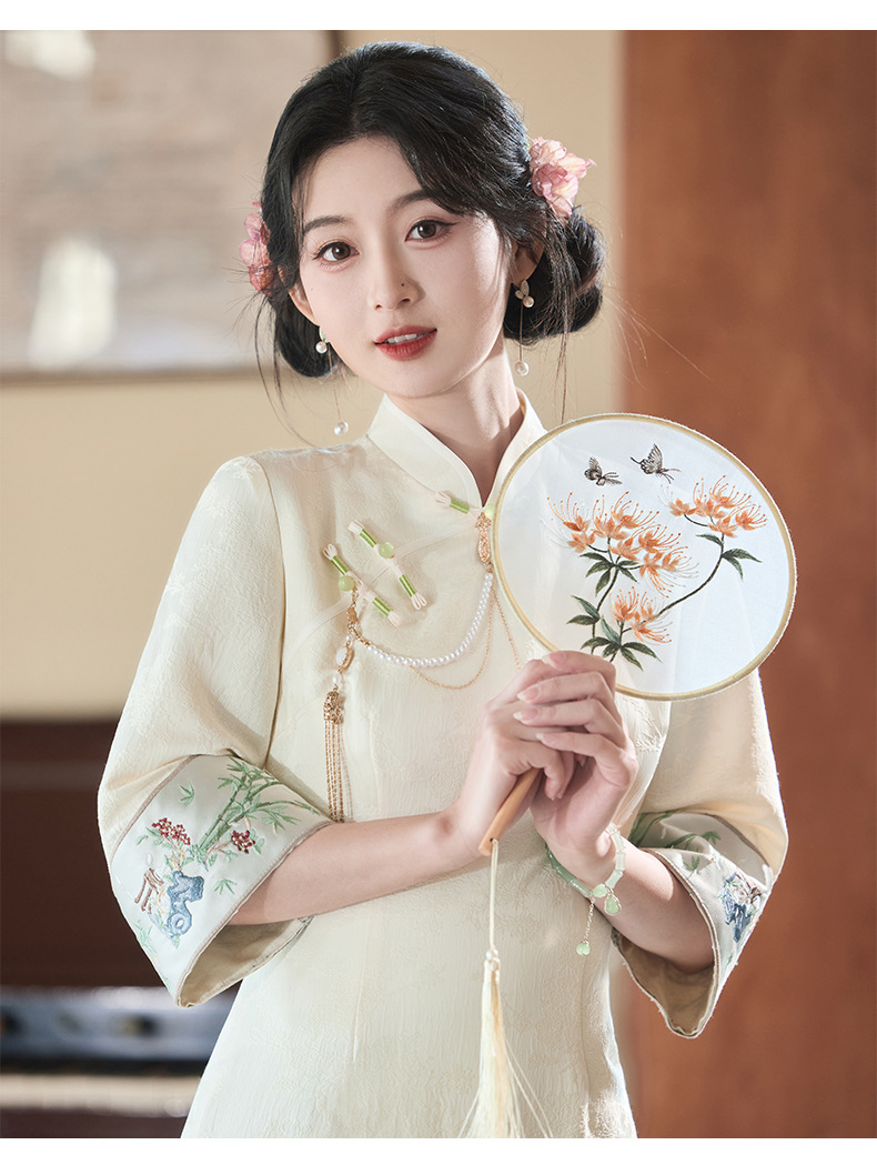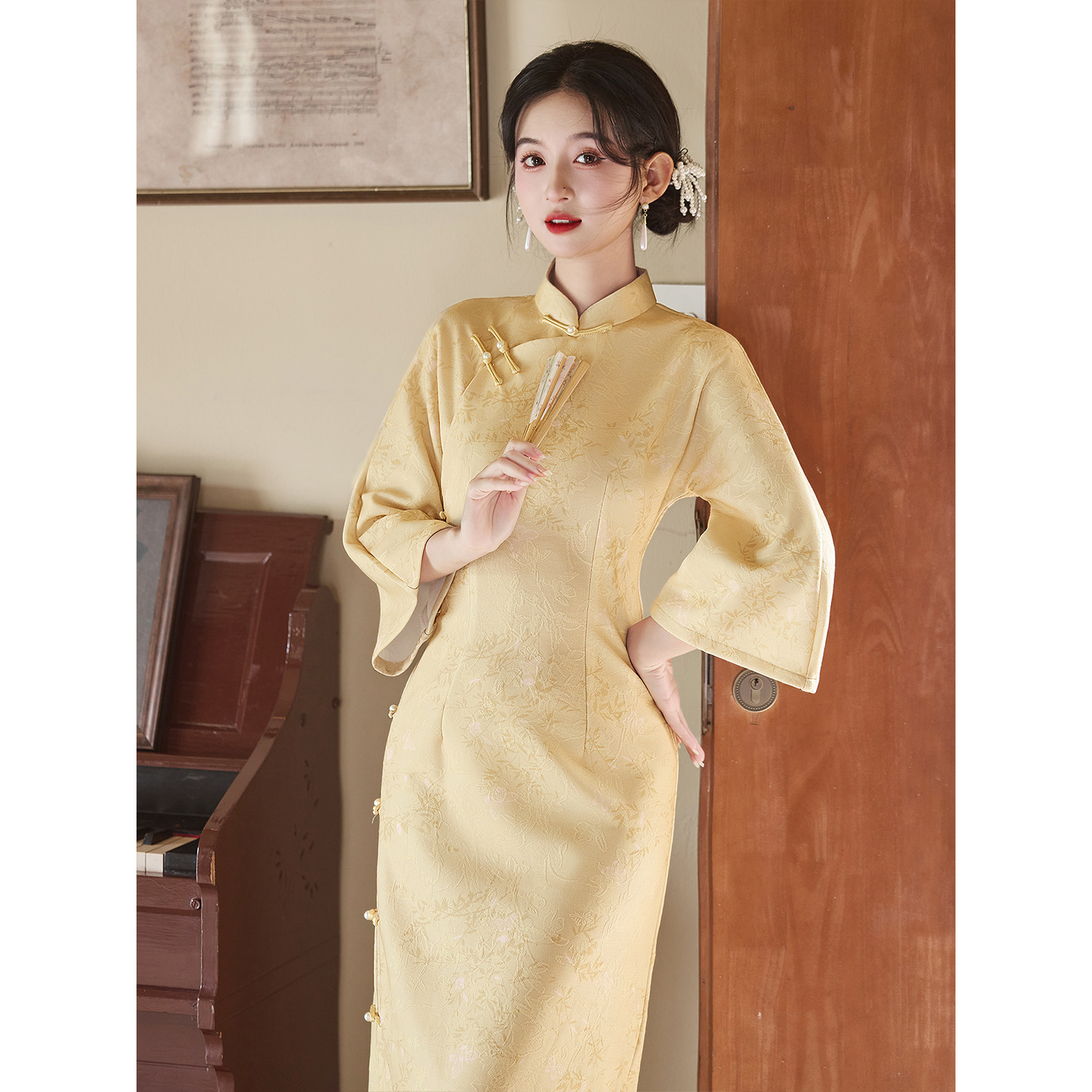 「蝶恋花語」温婉気質素雅江南風チャイナドレス新中国式倒大袖改良若いタイプの少女