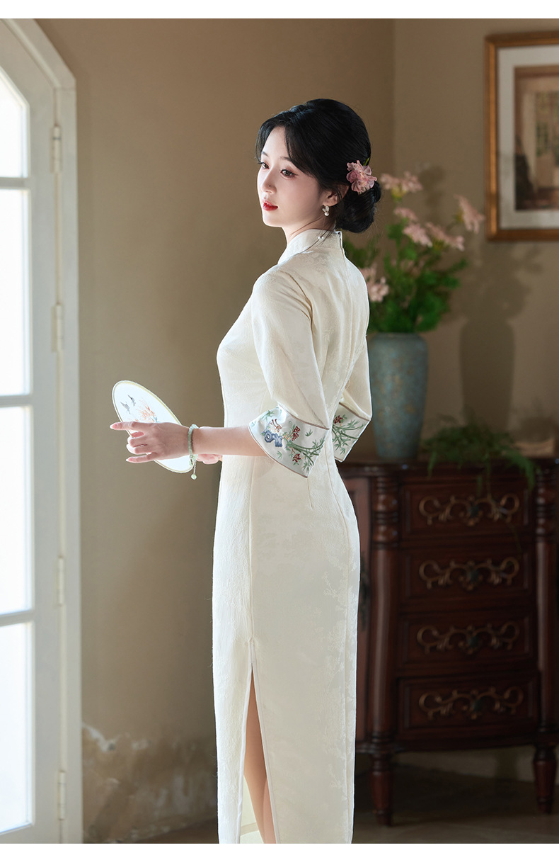 洛士博:月腕凝 温柔清雅双色重工刺绣马甲秋冬旗袍裙子套装女
