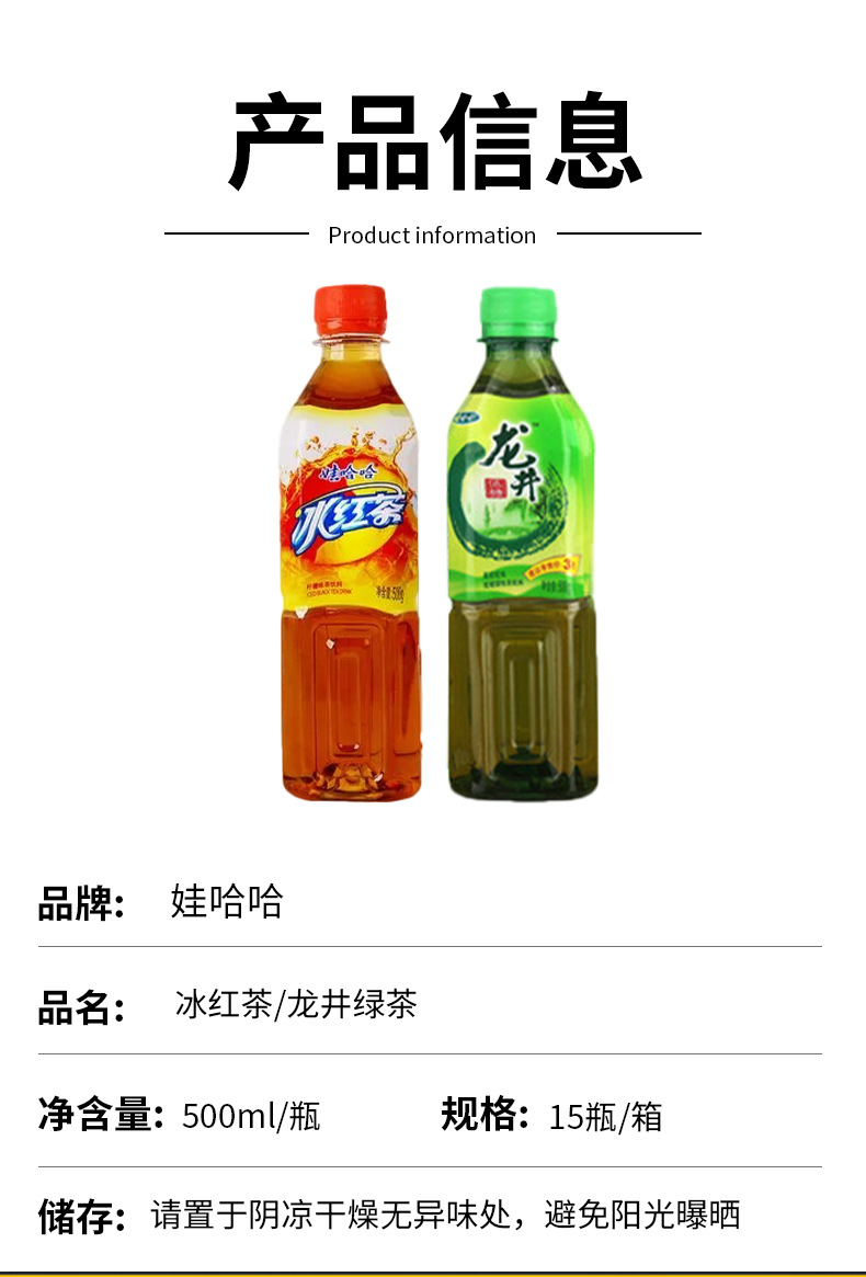 5夏季冰红茶聚餐清凉龙井绿茶500ml柠檬味解暑饮料娃哈哈瓶饮料