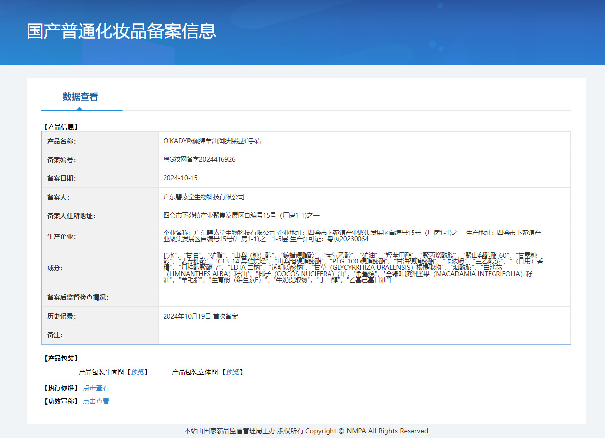 非特殊化粧品登録証番号 広東省Gメイクアップネットワーク準備ワード2024416926