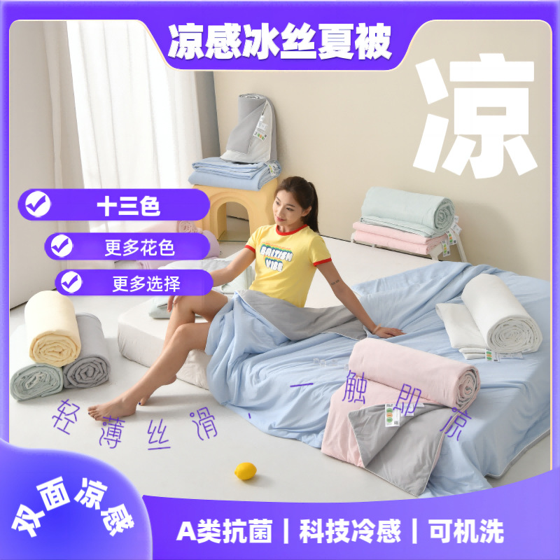 氷糸夏涼被涼感糸空調被a類母子級夏薄金シングル二人子供アイスクリーム布団