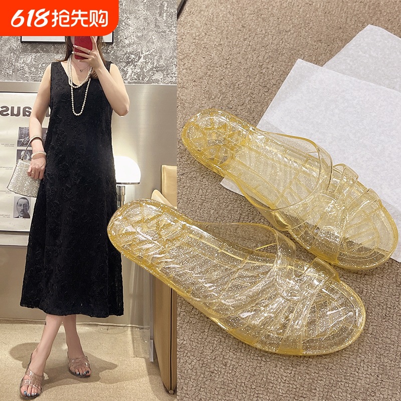 2025年新型浴室プラスチックスリッパ外着夏水晶靴女性滑り止め透明防臭プラスチックゼリー