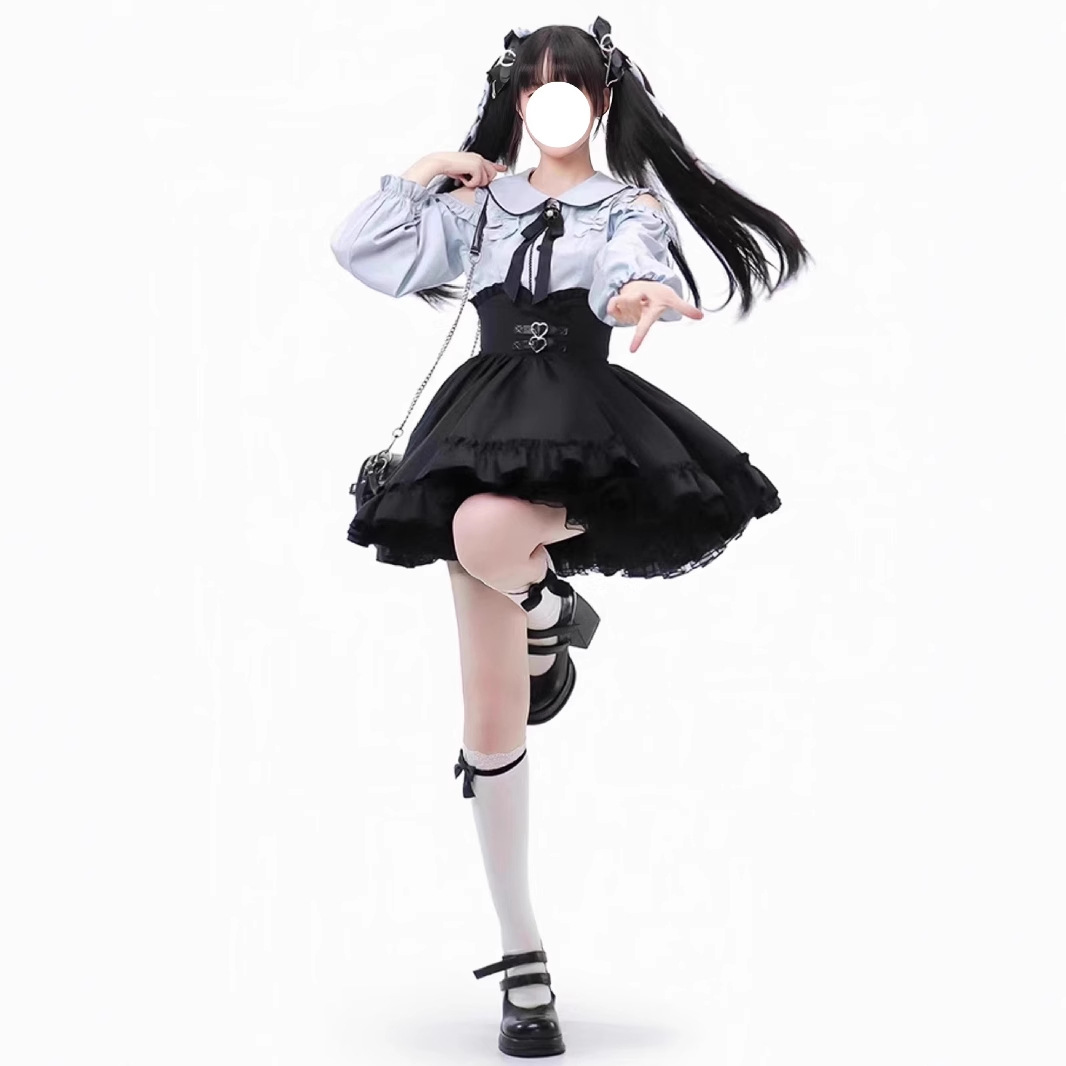 Sweetheart Meet ダーク量産ガール 3 色オフショルダー シャツ + ハイウエスト スカート ツーピース スーツ
