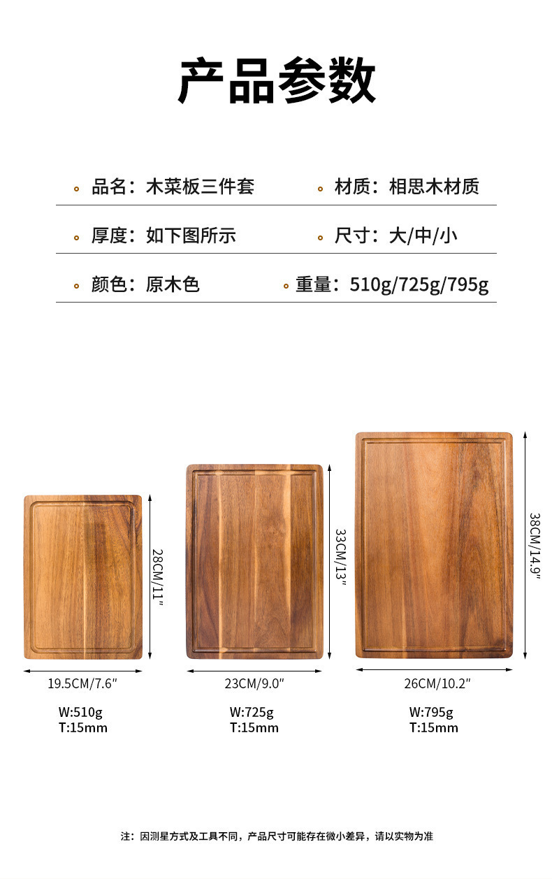 アカシア木製まな板 厚みのある無垢材 3点セット まな板 スクエアクッキング キャンプ ピクニック プレートトレイ クロスボーダー限定