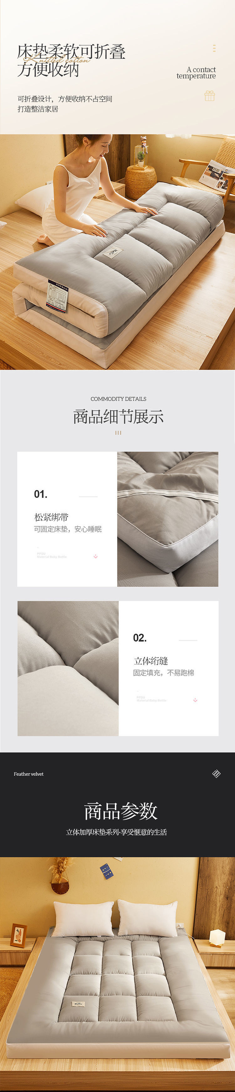 厚い保温マットレス畳折り畳み可能ダブルベッド布団学生寮マット滑り止め保護ベッド包郵便