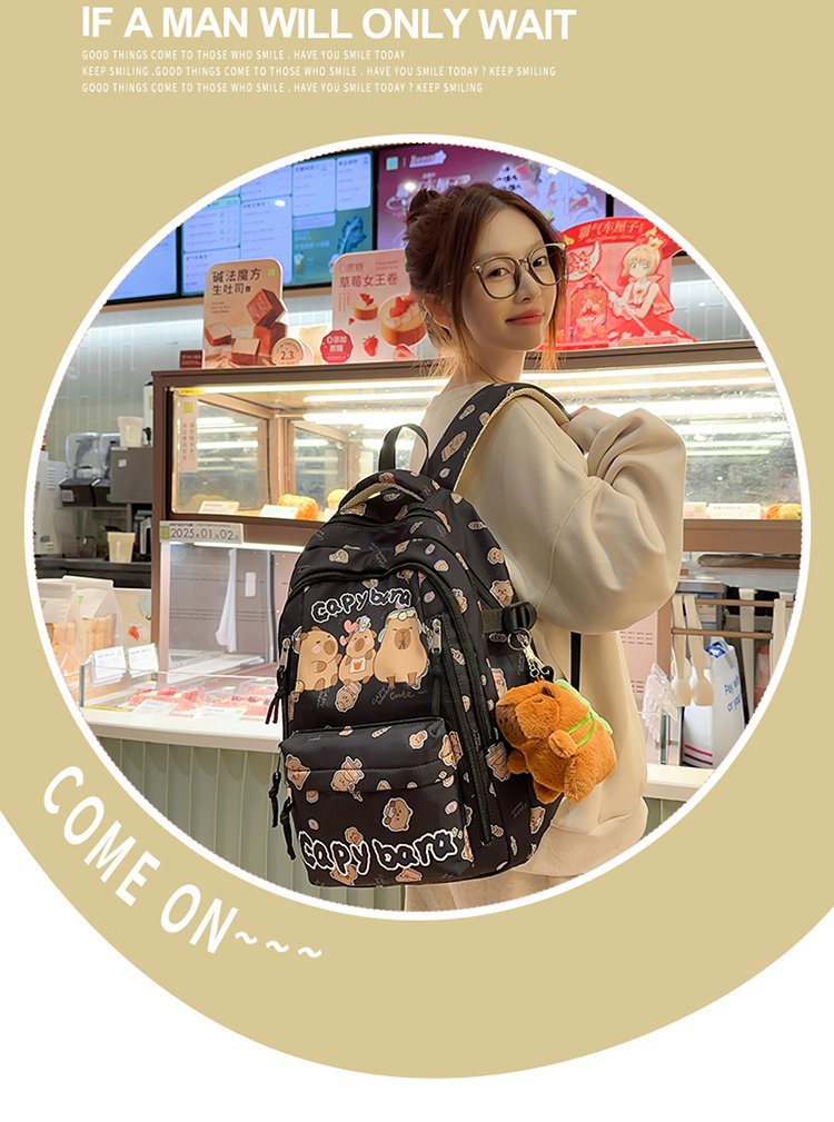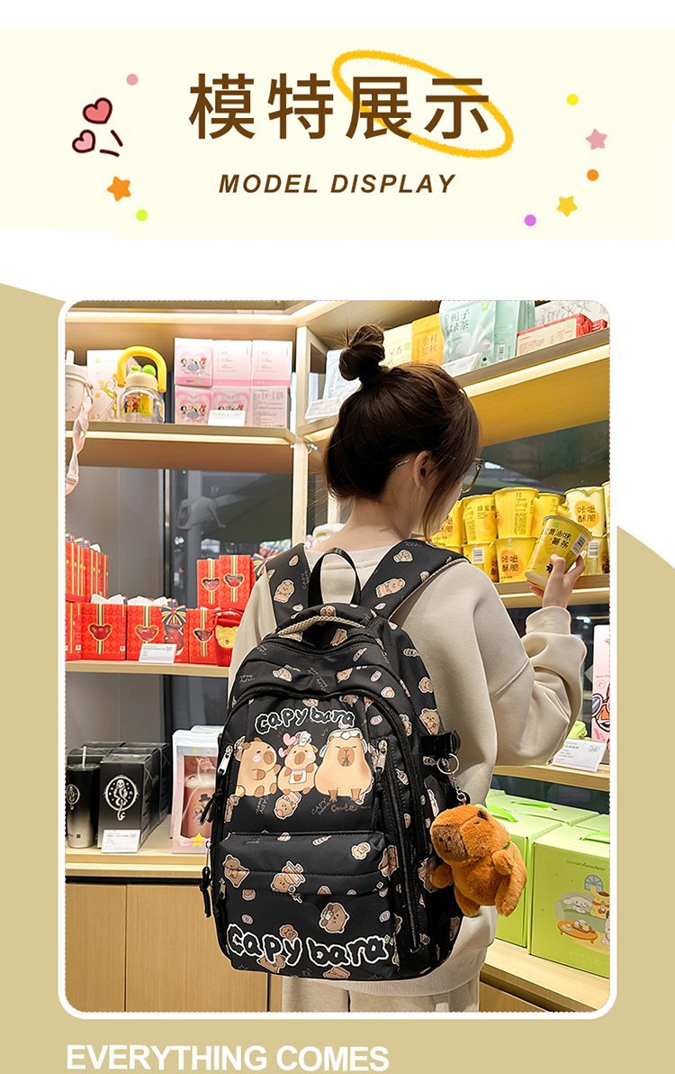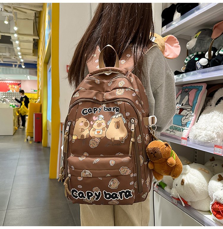卡皮巴拉水豚书包大容量初中高中小学生可爱背包百搭卡通双肩包潮
