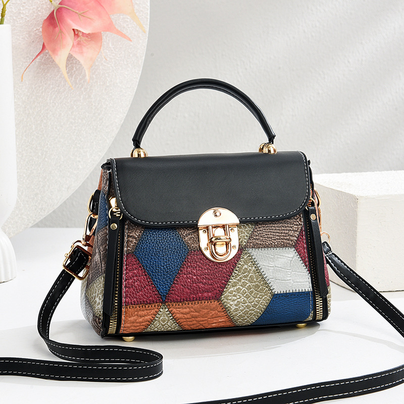 ファッション女性通勤ファッションバッグ洋風ハンドバッグ2025新型大容量衝突色プリント片肩小角バッグ