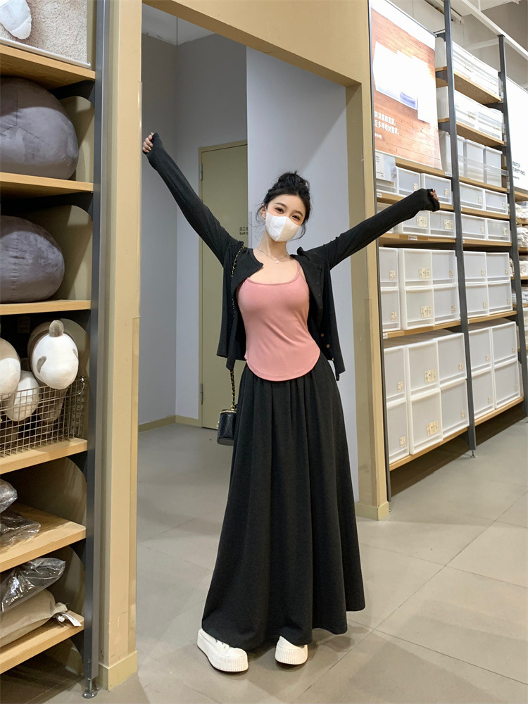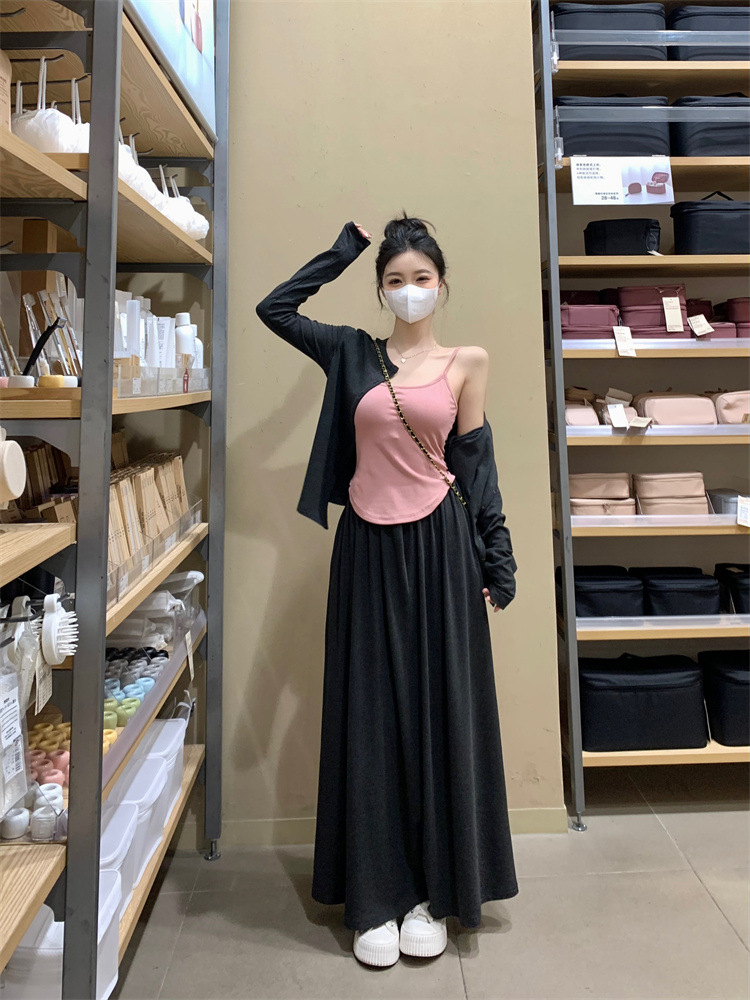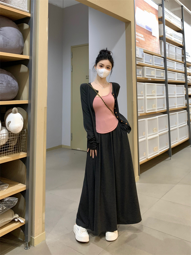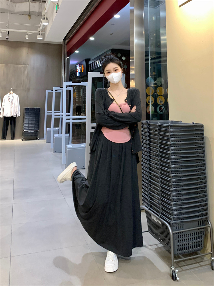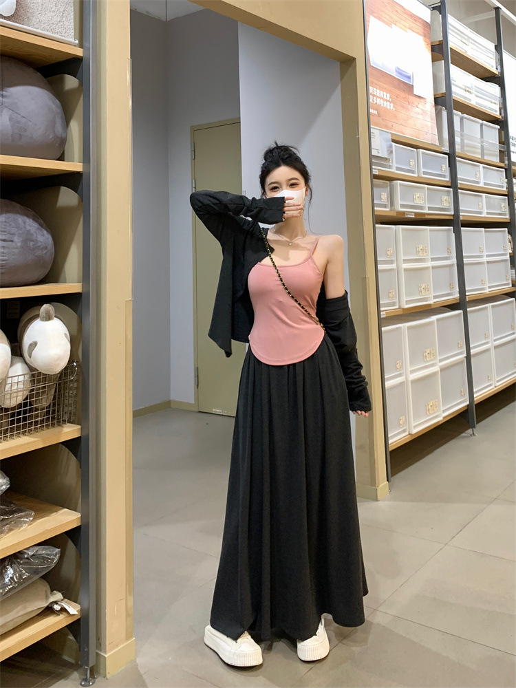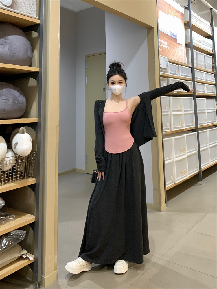 2025秋季新款韩系慵懒风胖mm高级感气质显瘦吊带裙两件套装女