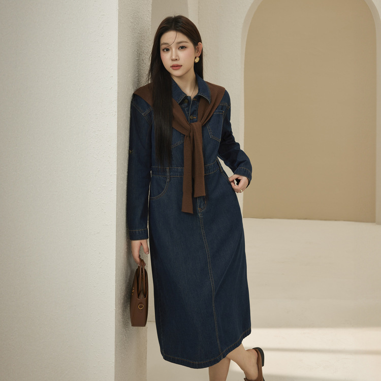 【美拉蓝】纤莉秀大码女装复古港风显瘦牛仔连衣裙胖mm2025秋新款