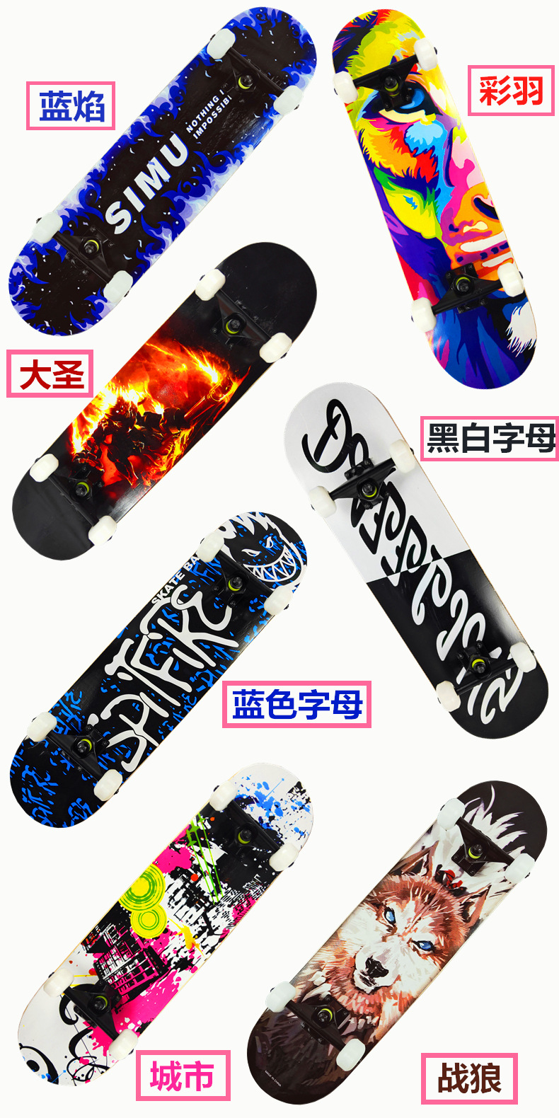 OK8,アイスブルー,CAYU,CITY,春は暖かく、花が咲きます,DASENG,ユニコーン,海辺のヤシの木,黒と白のチェック柄,黒と白の文字,ブラックファイアスカル,HOT FIRE,ARROW,ストリートボーイ,キングコング,京劇,Genius,エルフモンスター,パンの炎,青い夜空,ひし形,Deer King,Owl,エルク,トランプ,カラフルな夜空,秋の紅葉,カーブ,真っ黒,Forest,時間,クラゲ,ジャンプする鹿,スケートボードが大好きです,一枚の葉の平らなボート,見えない猫,ZANGLANG,DIAMOND DEER