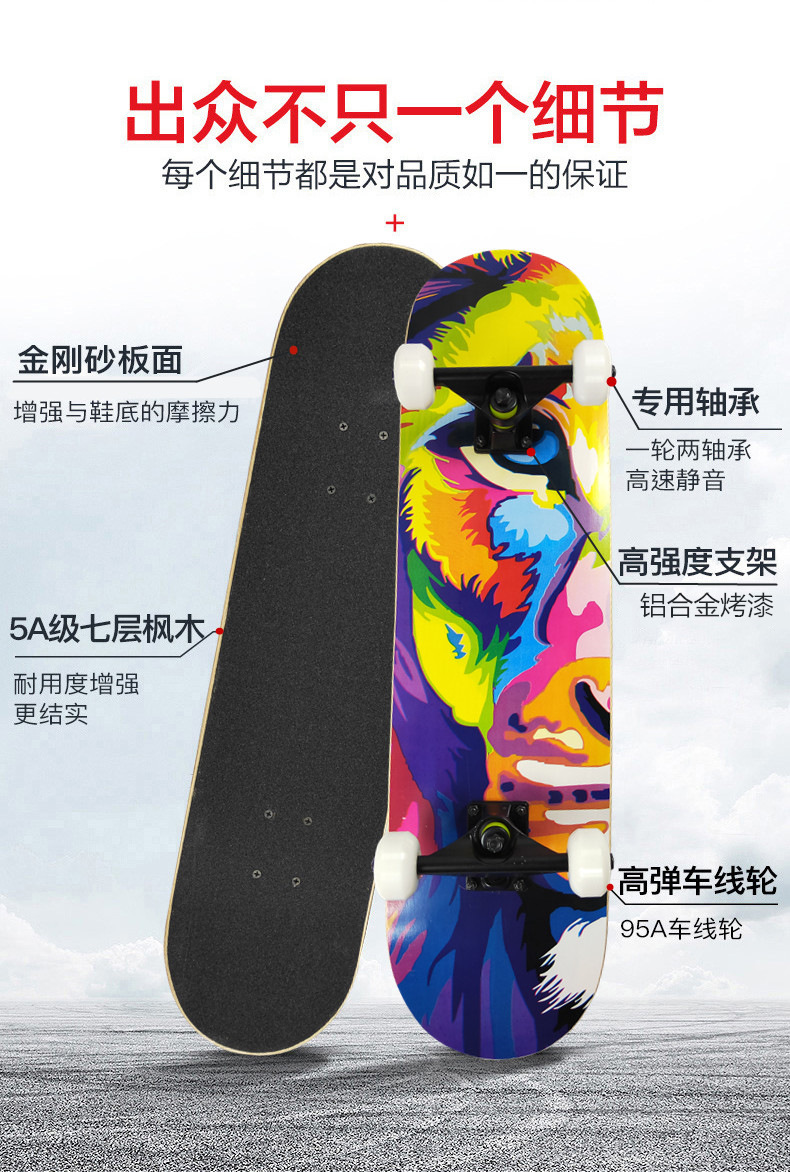 プロ仕様の大人用・子供用四輪ダブルカーブメープル初心者向け男女兼用青少年用ロードスケートボードプロスケートボード