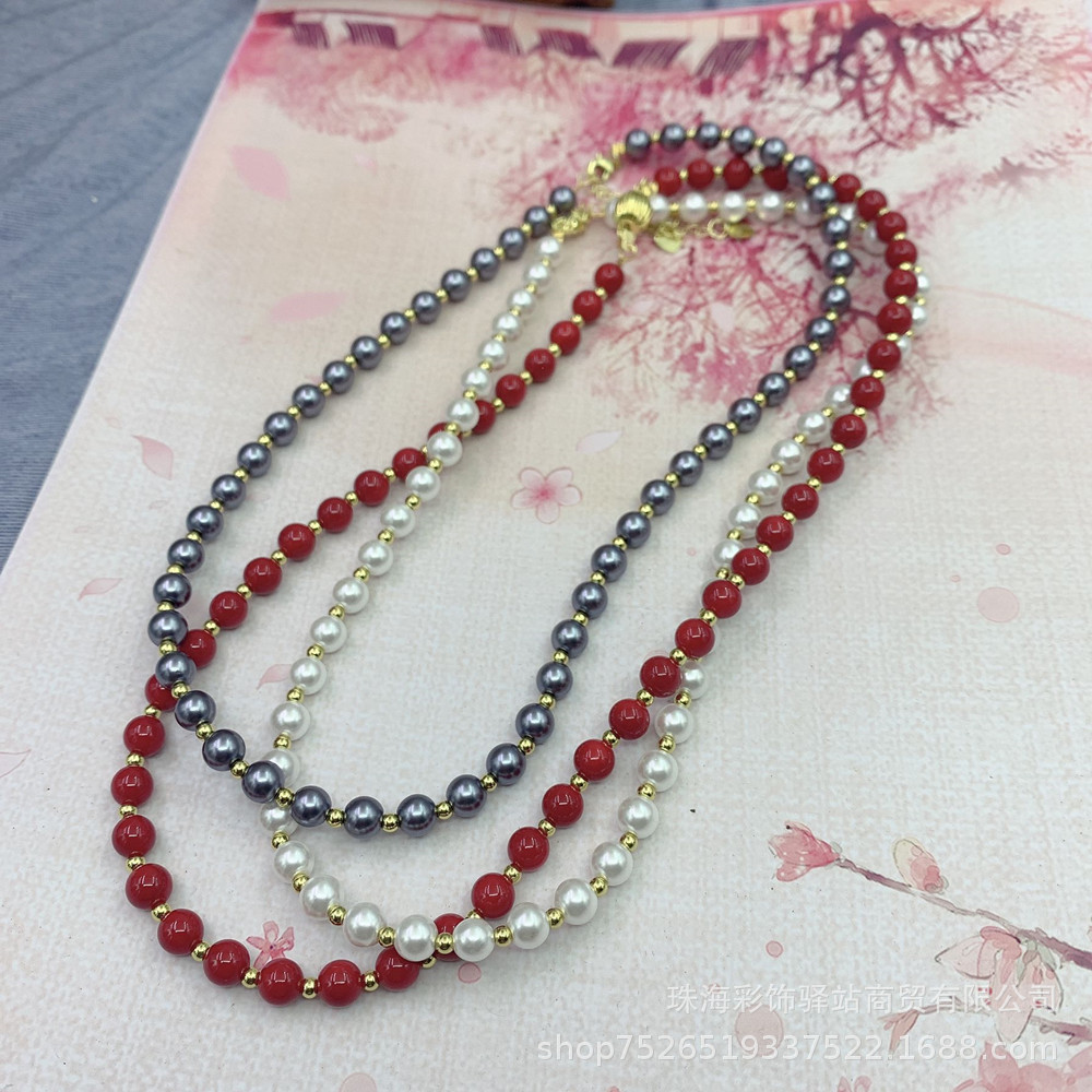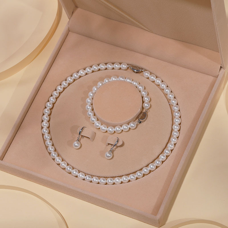 8mm ホワイト - ネックレス + ブレスレット + イヤリング,8mm パープルネックレス + ブレスレット + イヤリング,8mm イエロー - ネックレス + ブレスレット + イヤリング,8mm シルバーグレー - ネックレス + ブレスレット + イヤリング,8mm ブラックカラー - ネックレス + ブレスレット + イヤリング,ブラック - ネックレス + ブレスレット + イヤリング,フランネルボックス,赤い紙箱,10mm ホワイト - ネックレス 46cm - ブレスレット ゴムコード 20cm - イヤリング