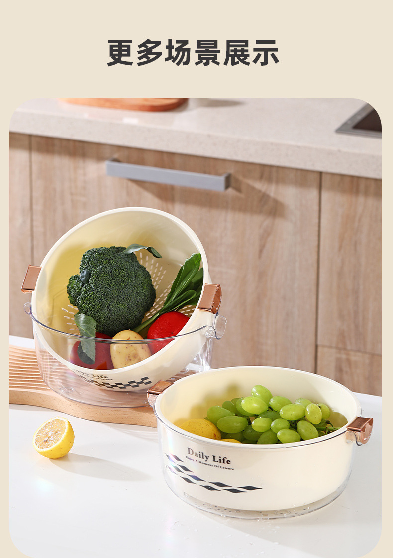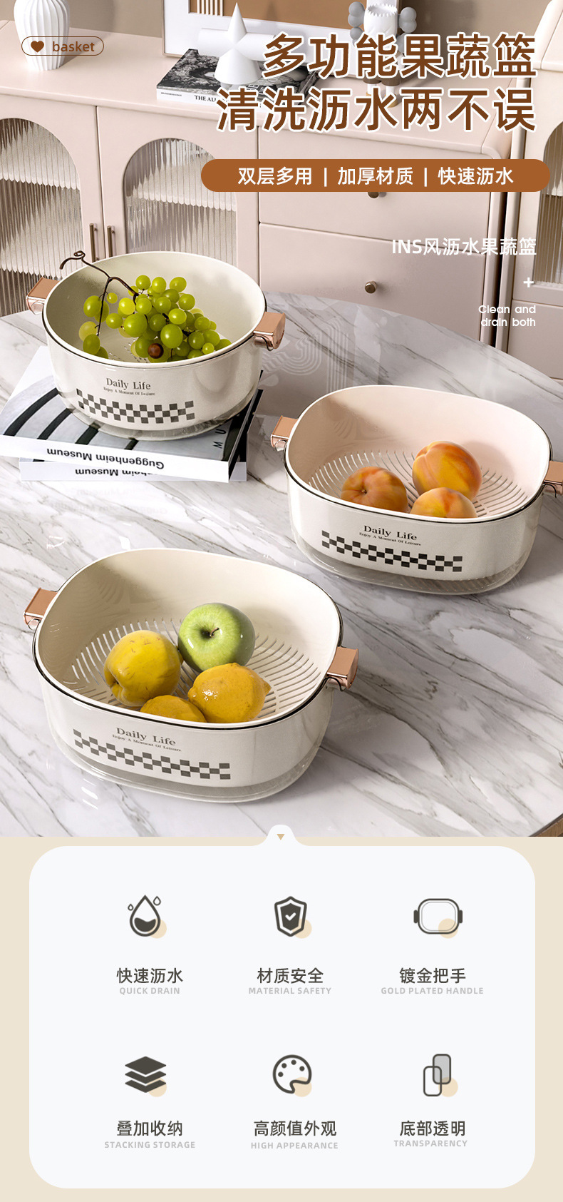 家庭用二重洗濯盆水たまり台所用品家庭用果物皿客間で米を研いで果物野菜かごを洗う
