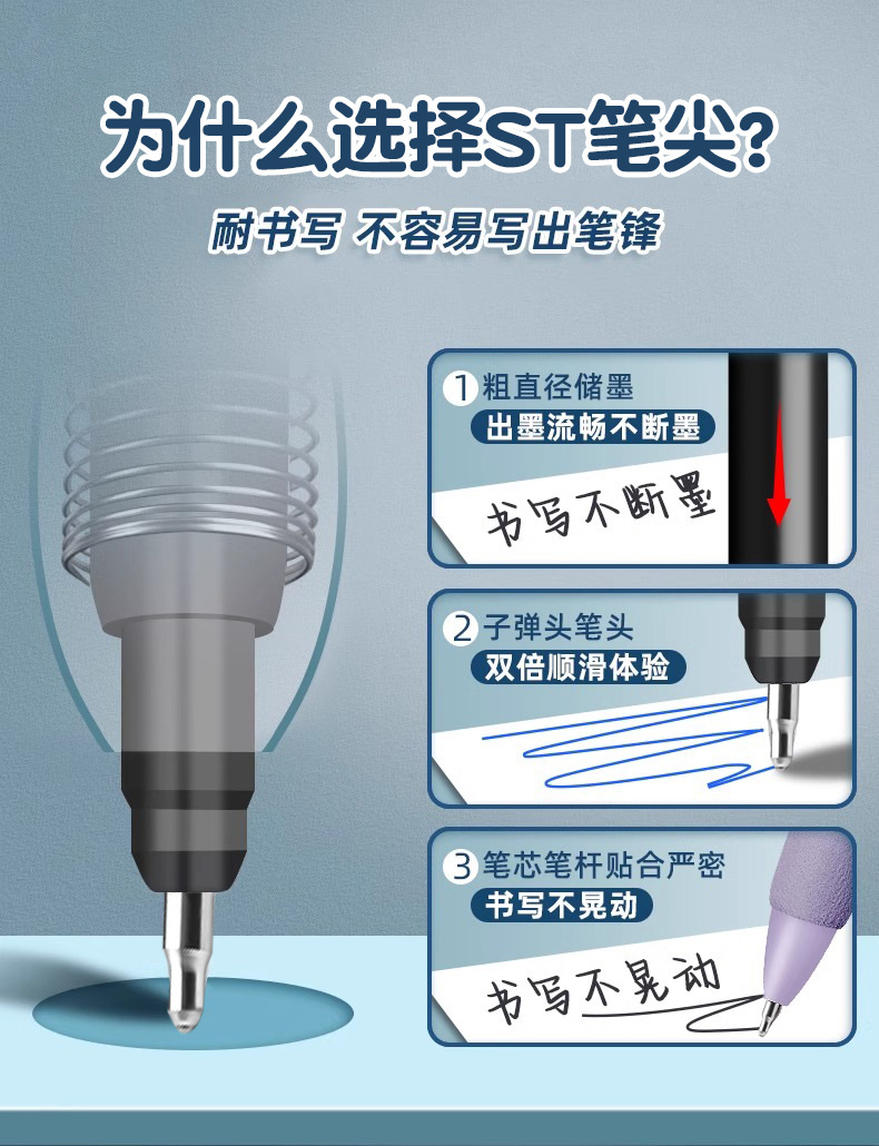 力があります。弾頭の芯を拭くことができます。学生は三年生の結晶藍黒0.5熱で中性の芯を拭くことができます。gt164