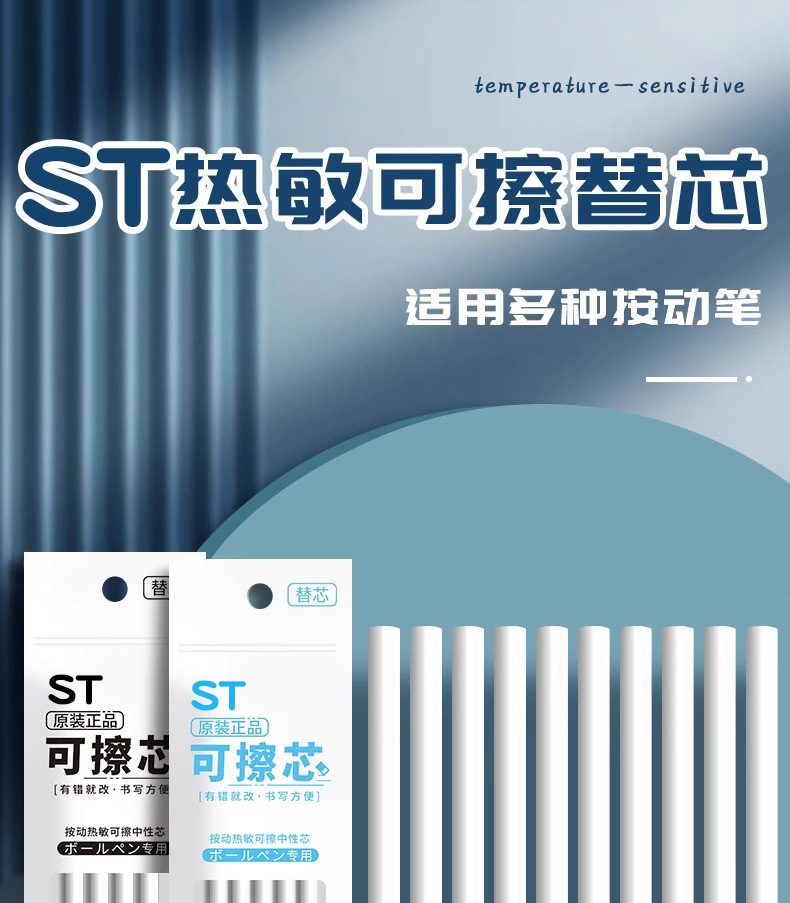サーマル拭き可押し中性ペン替え芯stバルブペン先晶青色黒色ペン芯20本付送ゴム棒