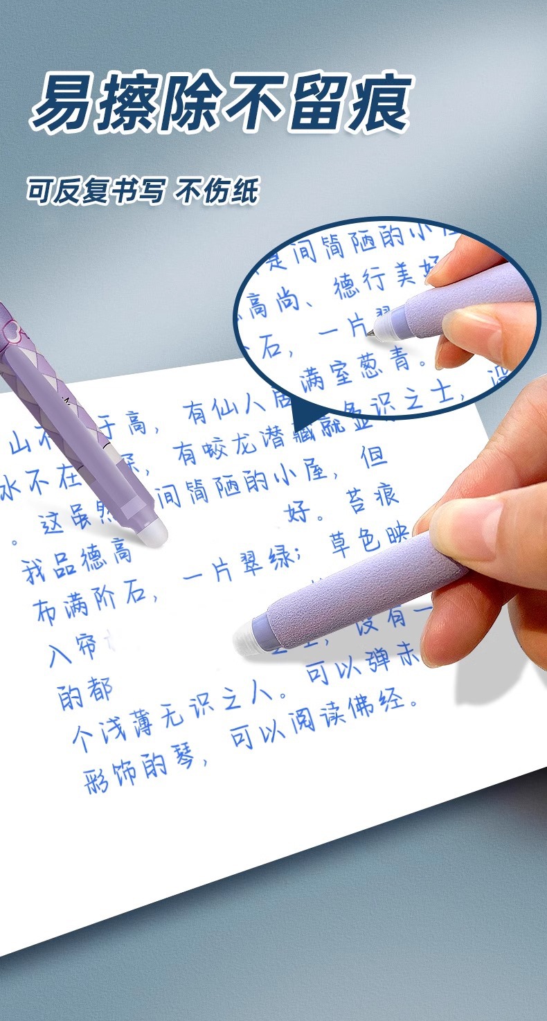 按动可擦笔芯中性笔晶蓝色热可擦3-5年级小学生用热魔摩磨易擦