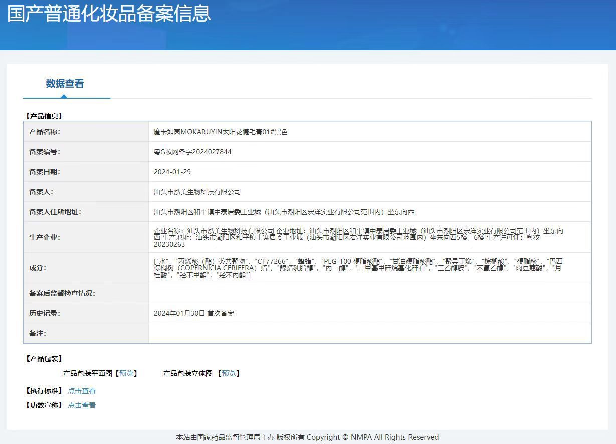 非特殊化粧品登録証番号 広東省Gメイクアップネットワーク準備ワード2024027844