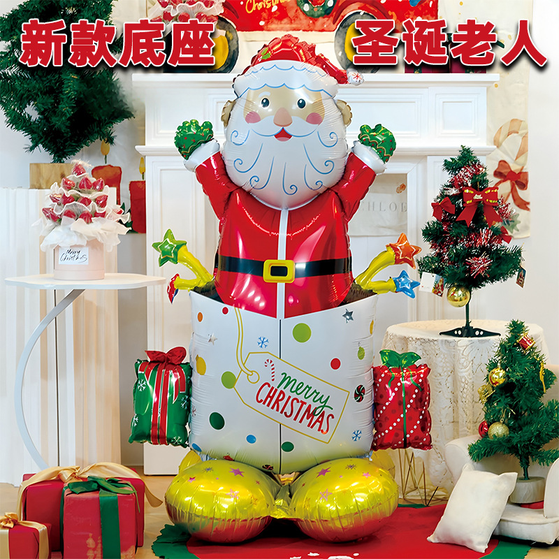 跨境热卖大号底座站立惊喜圣诞老人铝箔气球圣诞节装饰布置铝膜球