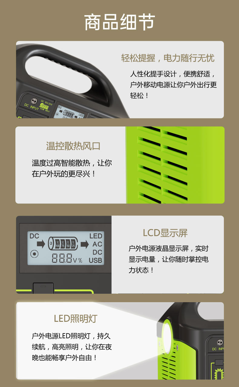 ポータブル屋外電源大容量モバイル電源太陽光発電100W-3000Wエネルギー貯蔵電源1件