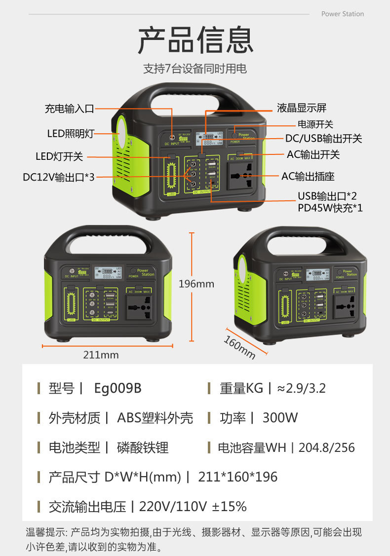 220V/110V户外电源200W太阳能发电移动应急电源户外钓鱼厂家批发