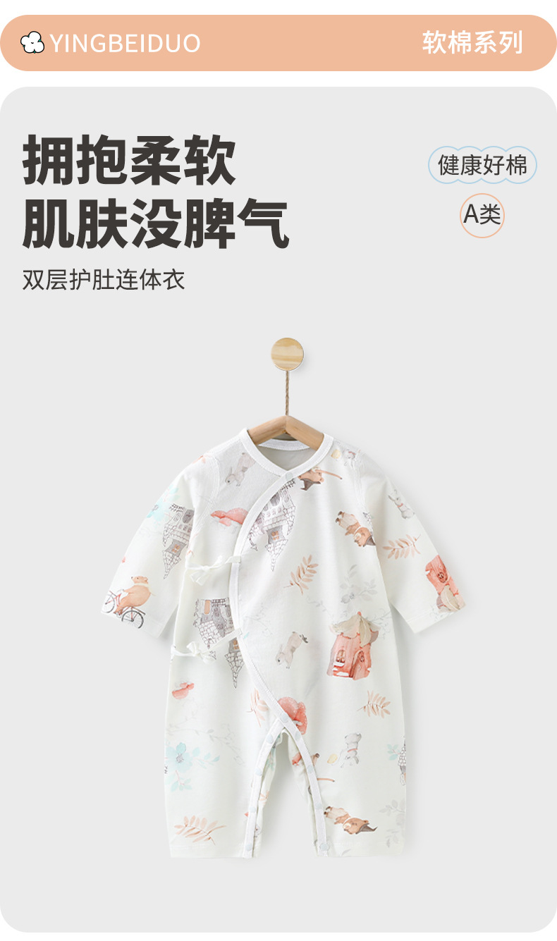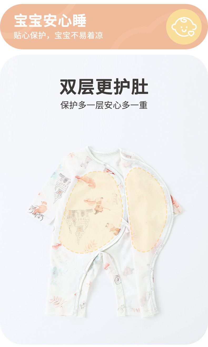 ベビージャンプスーツ、春と秋、カテゴリーA、純綿、男女兼用、新生児用、股開き可能、ロンパース、外出着