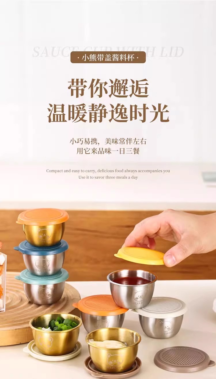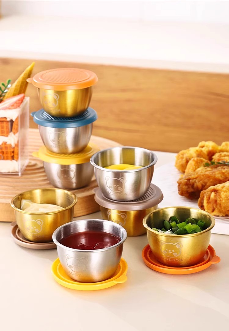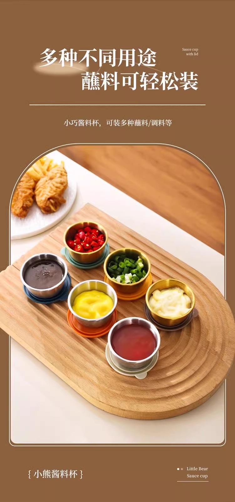 熊の調味料箱のミニソースコップの携帯食器の調味料皿の蓋付き家庭用トマトのサラダ箱の小皿