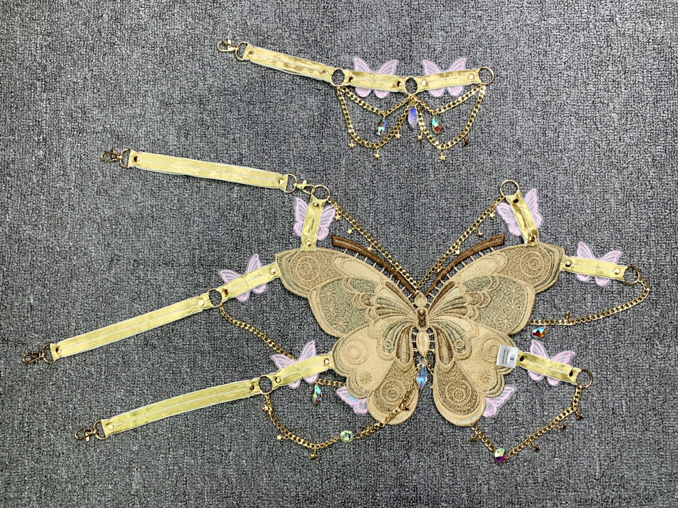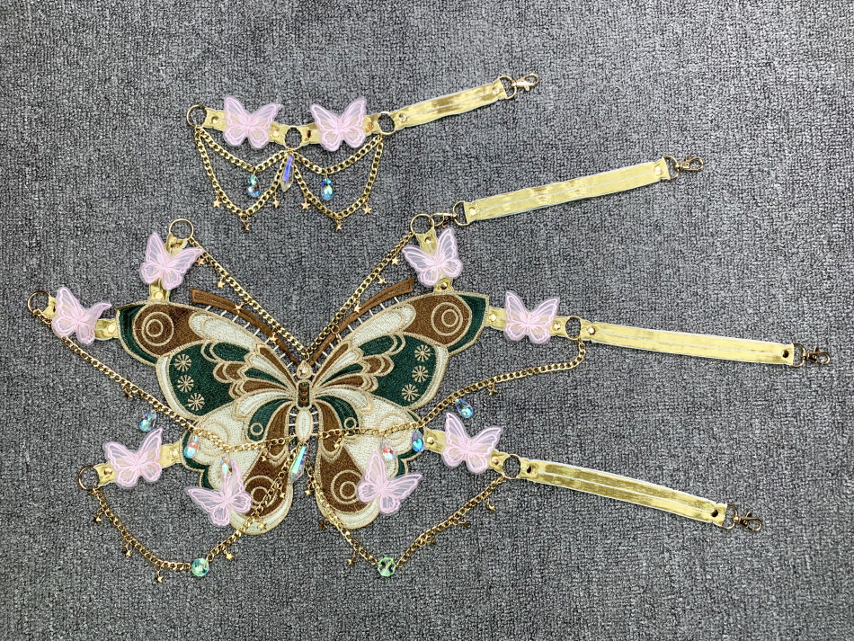 Ins欧米の越境の潮流の刺繍の蝶は金属の水晶をつづり合わせて飾ります。