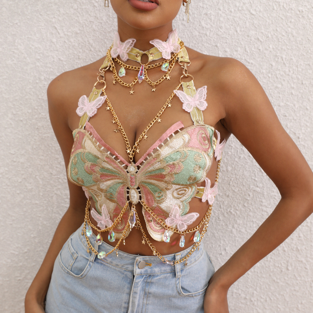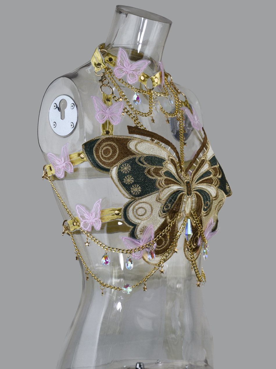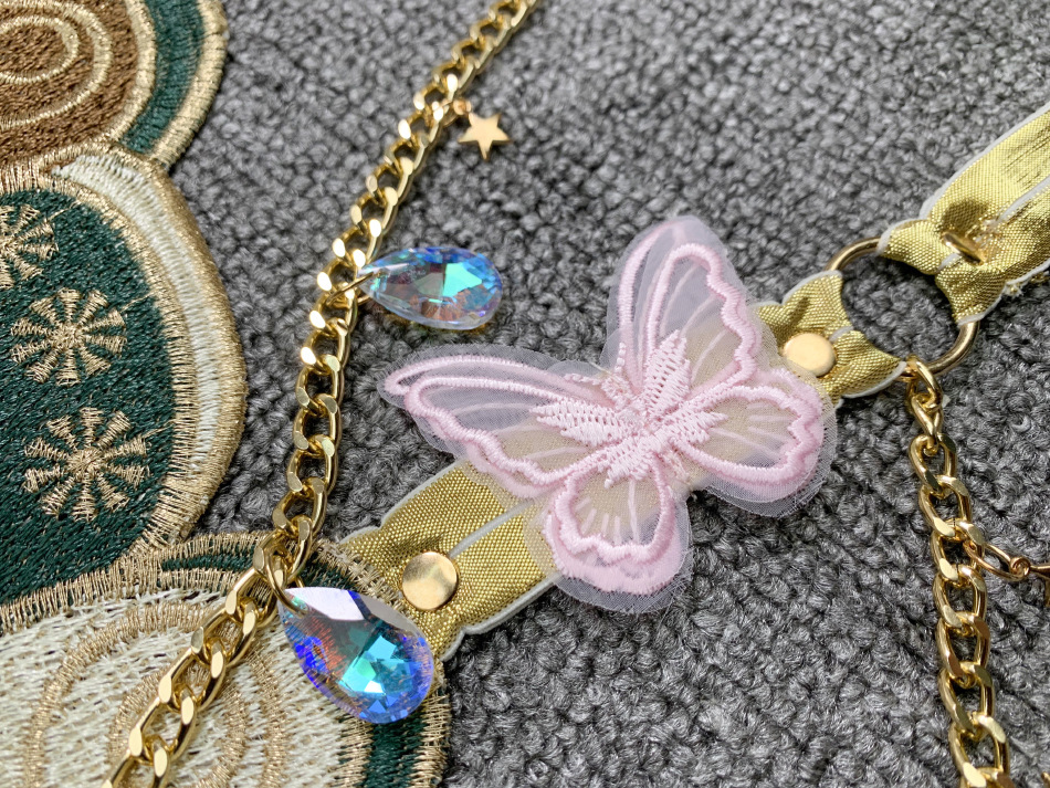 欧米のファッション刺繍蝶は金属水晶をつなぎ合わせて首を掛けます。