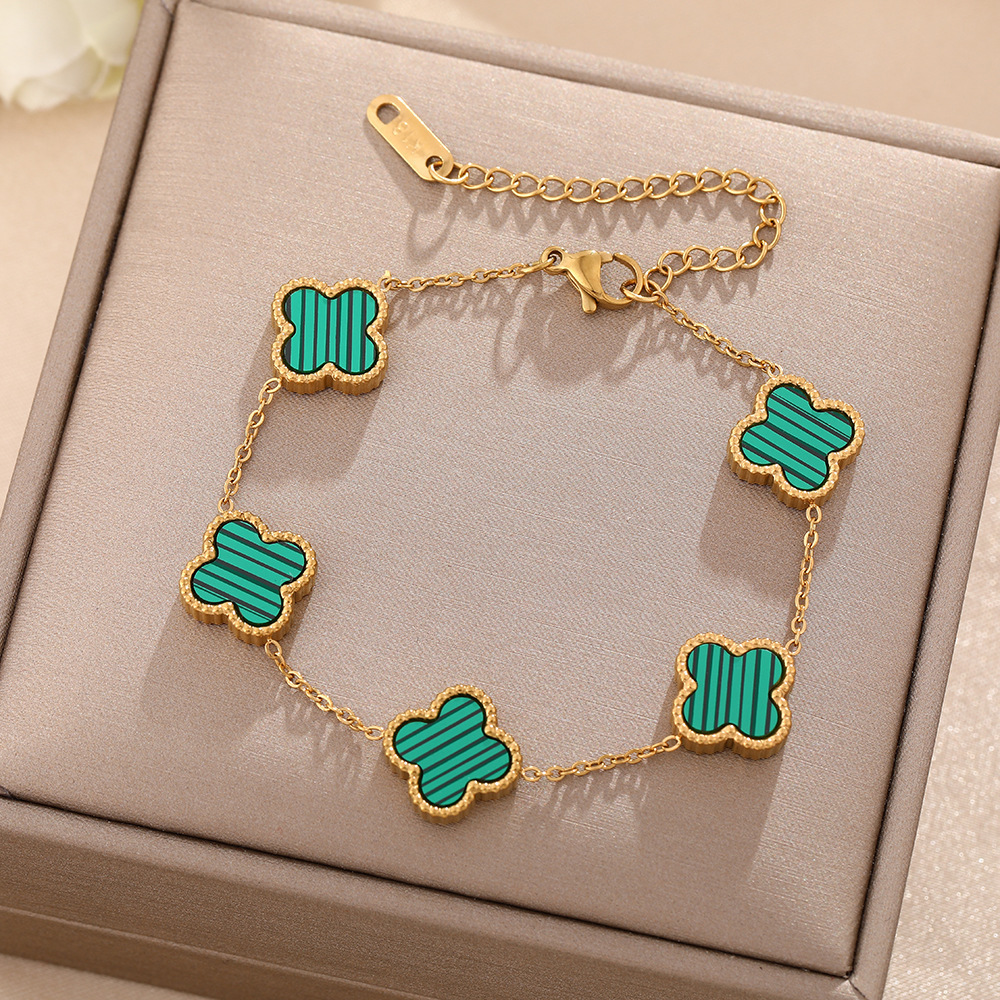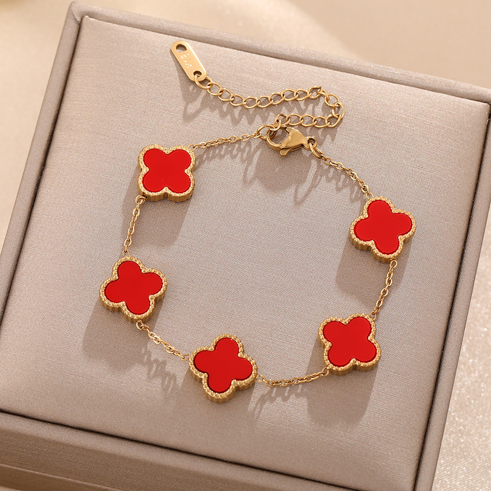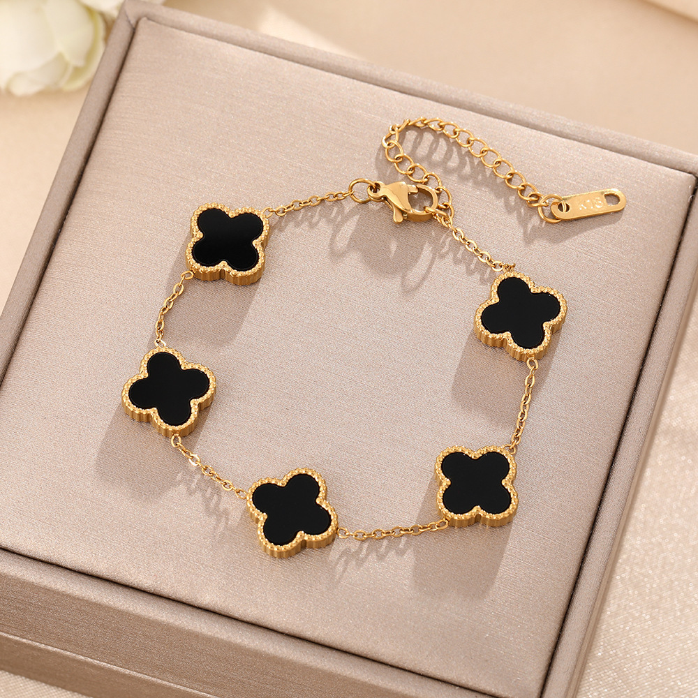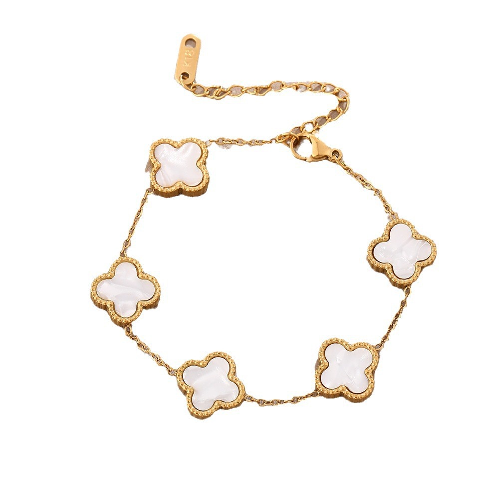 新しいins人気四叶のクローバーのブレスレットの両面の贝の五花のブレスレットは色を落とさないで高级なデザインのブレスレットの女性を饰ります。