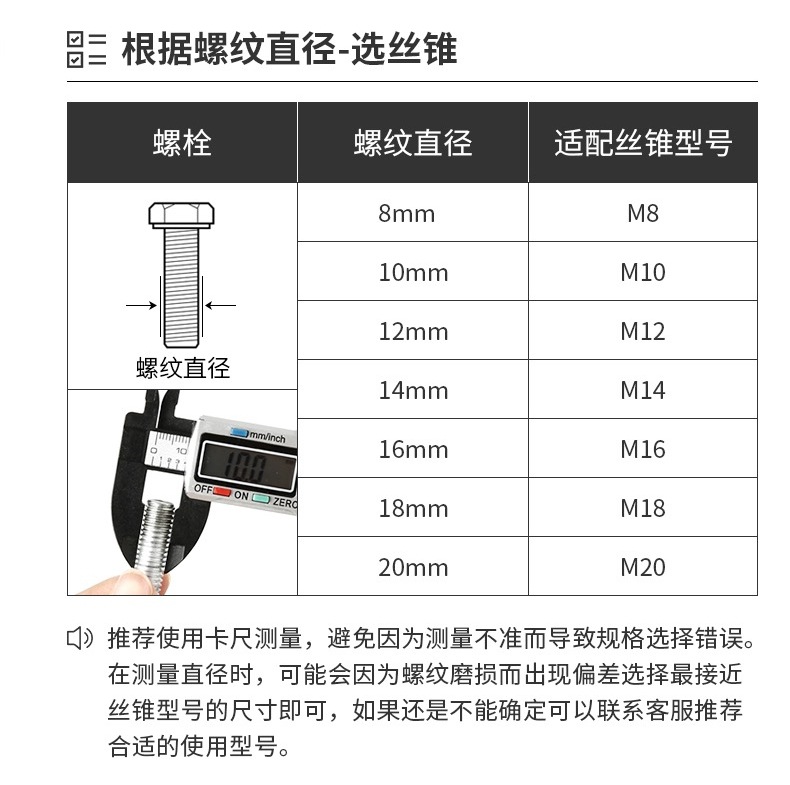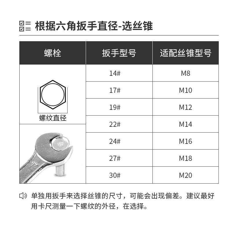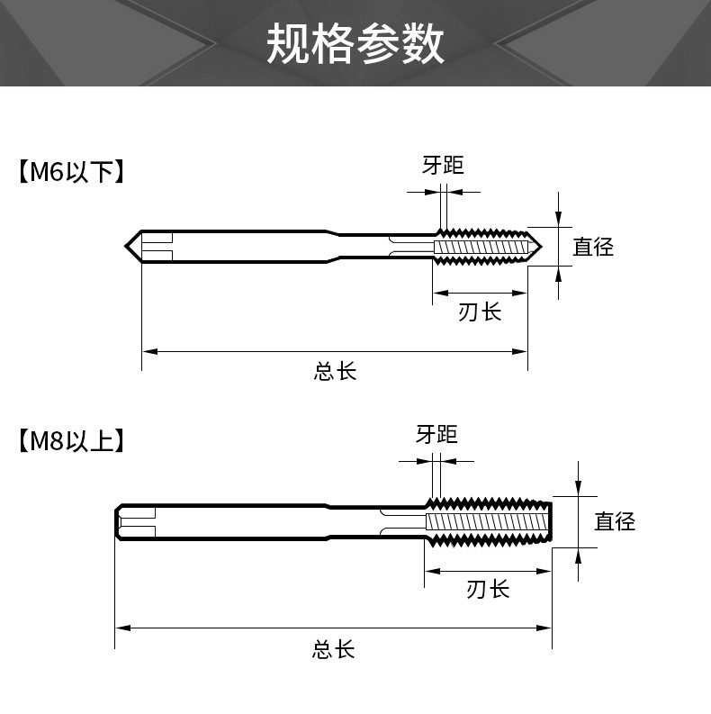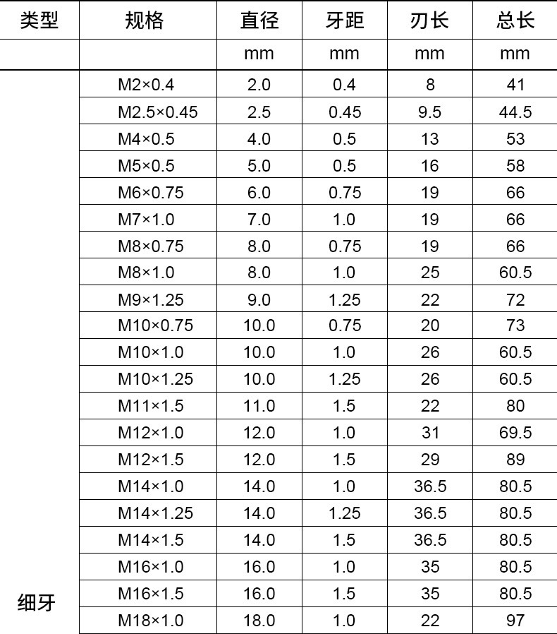 M2×0.4標準ねじ(1番目アタック+2番目アタック),M2.5×0.45標準ねじ(1番目アタック+2番目アタック),M3×0.5標準ねじ(1番目攻撃+2番目攻撃),M4×0.7標準ねじ(1番目アタック+2番目アタック),M4×0.5細歯(1攻+2攻),M5×0.8標準ねじ(1番目攻撃+2番目攻撃),M5×0.5細歯(1攻+2攻),M6*1.0標準ねじ(1番目アタック+2番目アタック),M6×0.75細歯(1攻+2攻),M7*1.0 標準歯(1番目攻撃+2番目攻撃),M8*1.25 標準ねじ(1番目アタック+2番目アタック),M8*1.0 細歯(1回攻+2回攻),M8×0.75細歯(1攻+2攻),M9*1.25 標準歯(1番目攻撃+2番目攻撃),M10*1.5 標準ねじ(1番目アタック+2番目アタック),M10*1.25 細かい歯 (1 回目の攻撃 + 2 回目の攻撃),M10*1 細かい歯 (1 回目の攻撃 + 2 回目の攻撃),M10×0.75細歯(1攻+2攻),M11*1.5 標準歯(1番目アタック+2番目アタック),M12*1.75 標準歯(1番目アタック+2番目アタック),M12×1.5細歯(初攻+二攻),M12*1.25 細歯(1攻撃+2攻撃),M12*1.0 細歯(1攻+2攻),M14*2.0 標準歯(1番目の攻撃 + 2番目の攻撃),M14*1.5 細歯(1攻+2攻),M14*1.25 細歯(1攻+2攻),M14*1.0 細歯(1回攻+2回攻),M16*2.0 標準スレッド (1 回の攻撃 + 2 回の攻撃),M16×1.5細歯(1攻+2攻),M16*1.25 細歯(1攻撃+2攻撃),M16*1.0 細歯(1回攻+2回攻),M18×2.5標準歯(1番目攻撃+2番目攻撃),M18*2.0 細歯(1攻+2攻),M18×1.5細歯(1攻+2攻),M18*1.0 細歯(初攻+二攻),M20*2.5 標準ねじ(1番目アタック+2番目アタック),M20*2.0 細歯(1回攻+2回攻),M20×1.5細歯(1攻+2攻),M20*1.0 細歯(初攻+二攻),M22*2.5 標準歯(1番目アタック+2番目アタック),M22*2.0 細歯(1攻+2攻),M22*1.5 細歯(1攻+2攻),M22*1.0 細歯(初攻+二攻),M24*3.0 標準スレッド (1 回の攻撃 + 2 回の攻撃),M24*2.0 細歯(初攻+二攻),M24×1.5細歯(1攻+2攻),M24*1.0 細歯(1回攻+2回攻),M27*3.0 標準歯(1番目アタック+2番目アタック),M27*2.0 細歯(初攻+二攻),M27*1.5 細歯(1回攻+2回攻),M27*1.0 細歯(初攻+二攻),M30*3.5 標準歯(1番目アタック+2番目アタック),M30*2.0 細歯(初攻+二攻),M30*1.5 細歯(1攻+2攻),M33*3.5 標準ねじ(1番目アタック+2番目アタック),M36*4.0 標準ねじ(1番目アタック+2番目アタック),M2×0.4ハイス標準ねじ(1番目攻撃+2番目攻撃),M3×0.5ハイス標準ねじ(1番目攻撃+2番目攻撃),M4×0.7ハイス標準ねじ(1番目攻撃+2番目攻撃),M5×0.8ハイス標準ねじ(1番目タッピング+2番目タッピング),M6×1.0ハイス標準ねじ(1番目攻撃+2番目攻撃),M8×1.25ハイス標準ねじ(1番目攻撃+2番目攻撃),M10×1.5ハイス標準ねじ(1番目タッピング+2番目タッピング),M12×1.75ハイス標準ねじ(1番目攻撃+2番目攻撃),==================タップセット=================,M1~M2.5(8本組タップ),M3~M8(6本組タップ),M6~M12(タップ6本組),M3~M12(8本組タップ),M3~M6(タップドリルビット9本組),M6~M12(タップ10本組),M6~M12(11本組タップ),==================タップレンチ==================,M1~M10(高品質),M3~M12(高品質),M5-M20(高品質),M3-10,M6-14,M8-18,M12-M24,M27-M40,M3~M8 ラチェット正逆回転,M5~M12 ラチェット正逆回転,M3~M12 ラチェット正逆回転,ステンレス鋼やその他のタップの加工が必要な場合は、カスタマーサービスにお問い合わせください。