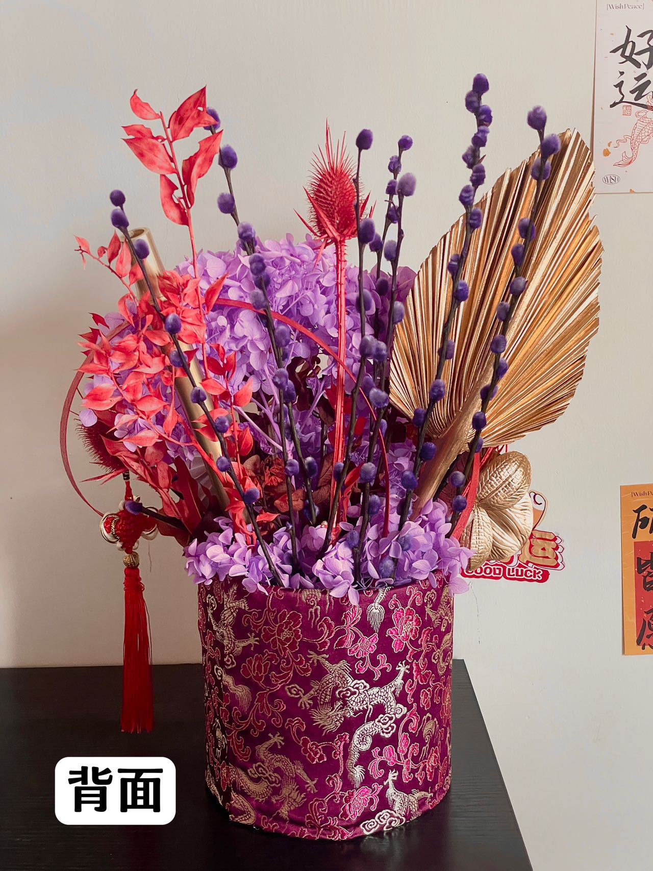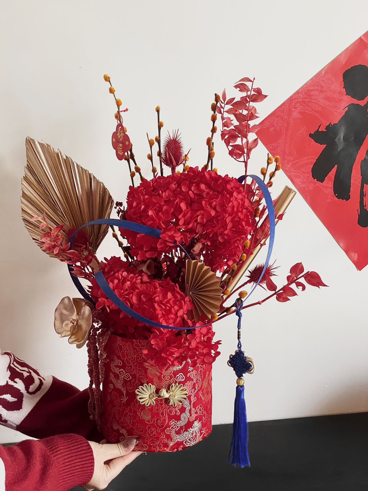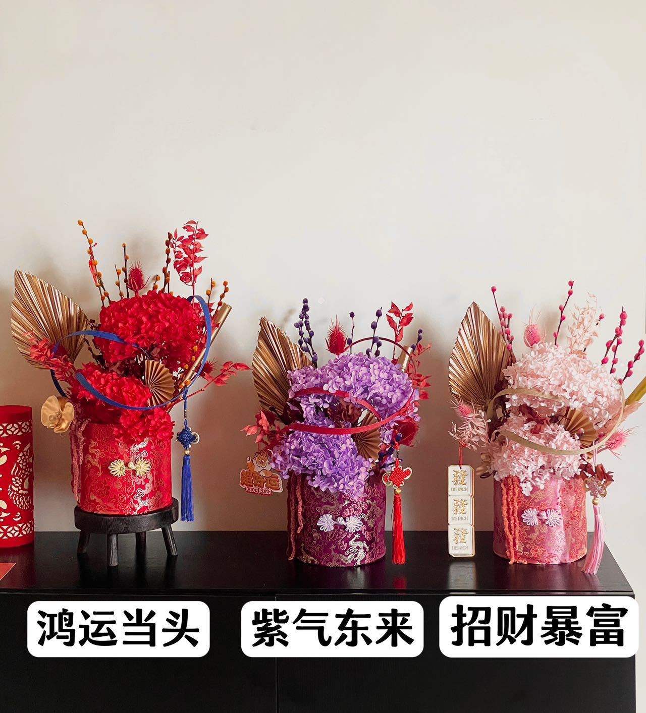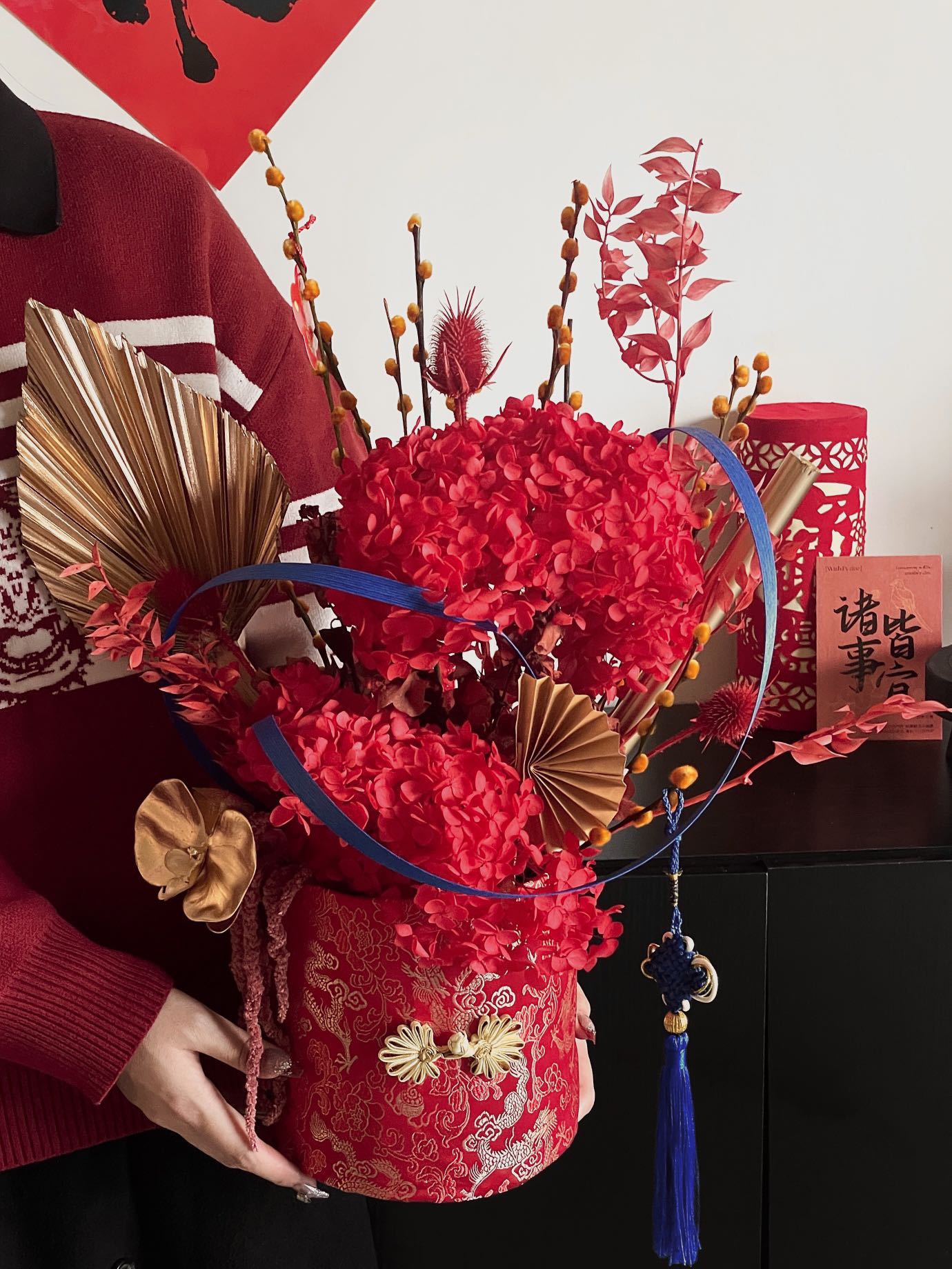 年夜花福桶完成品新年喬迁の喜客間装飾生け花年夜花永生花アジサイの置物