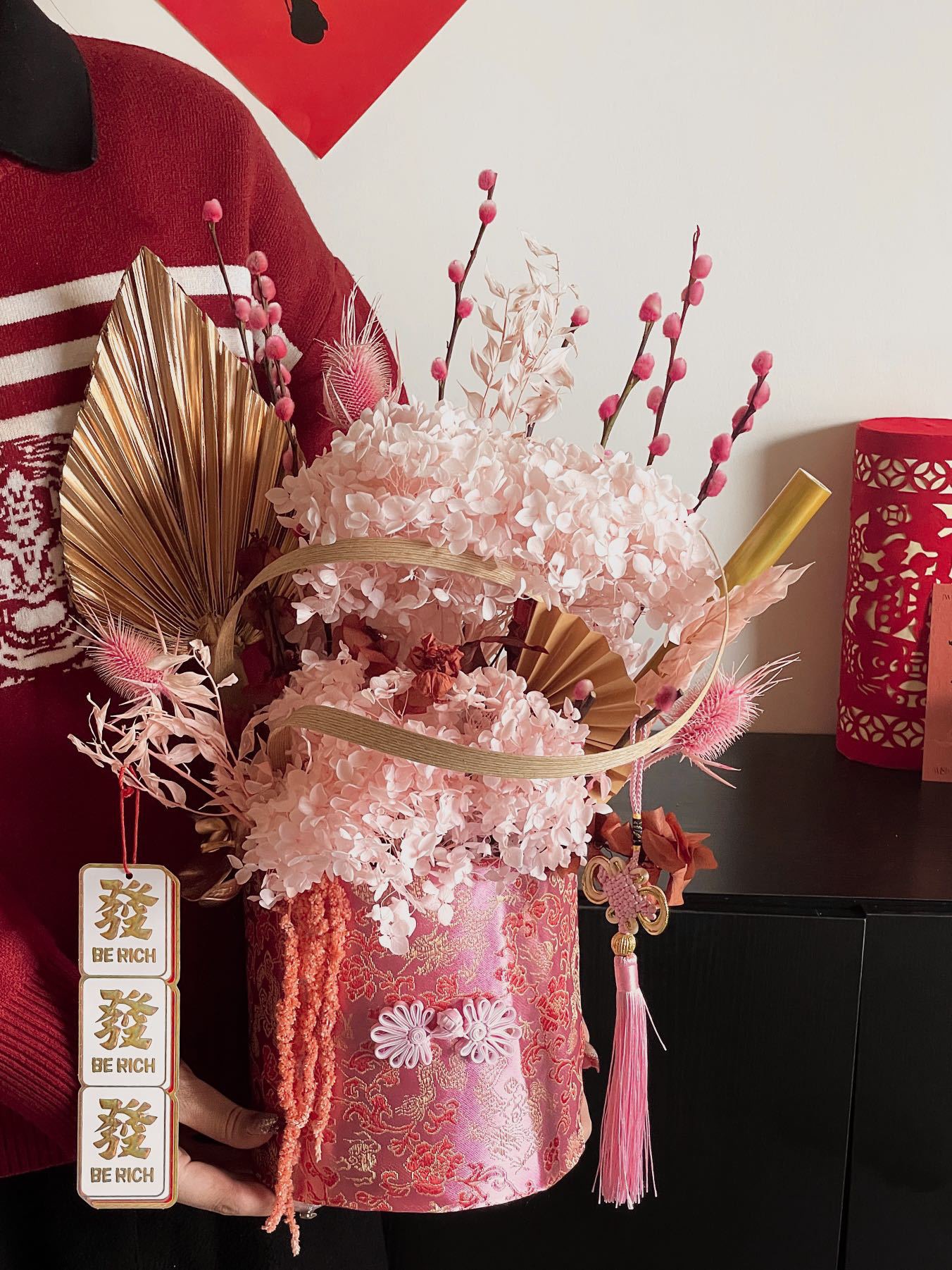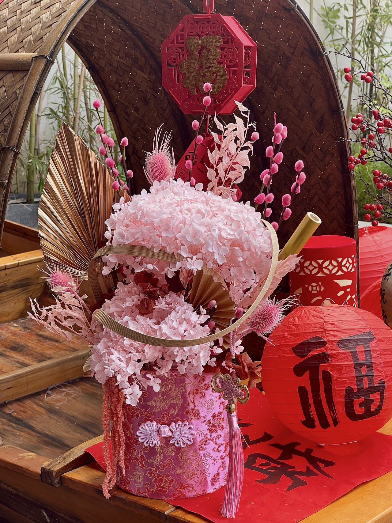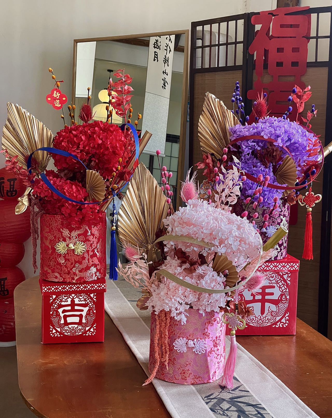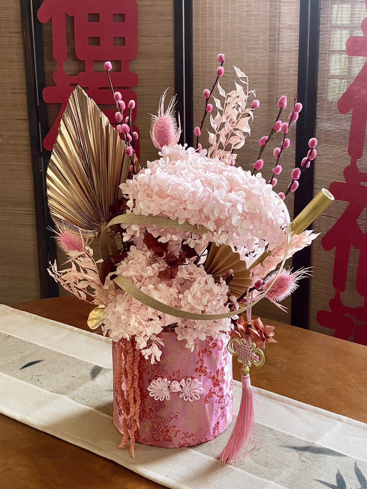 年夜花福桶完成品新年喬迁の喜客間装飾生け花年夜花永生花アジサイの置物