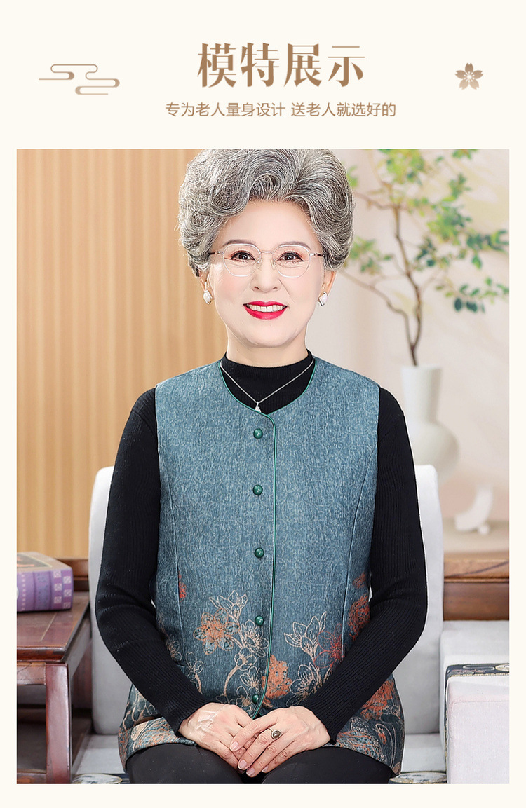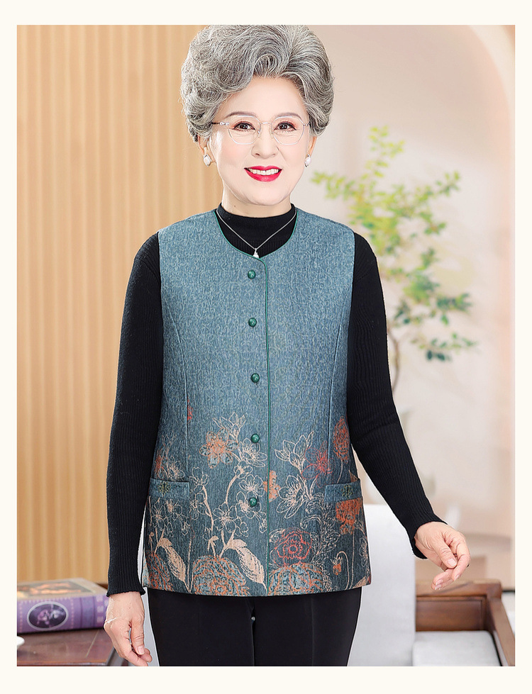 おばあさんのおばあさんは秋冬にベルベットの馬甲を着ています。